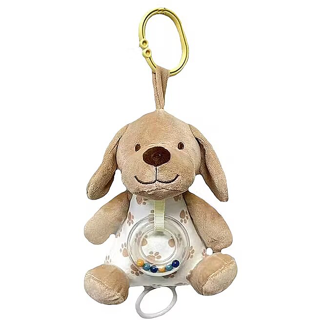Description - Music box beige dog 18 cm The music box by TULILO is made of soft plush and plastic, ensuring safety and comfort during the toddler's playtime. The doggie's beige colour makes it universal and fits into any child's interior. Thanks to its dimensions and the lack of need for batteries, the music box is a practical and easy-to-use product. In addition, the fact that no batteries are included and no power supply is required makes the product safe for the youngest children.