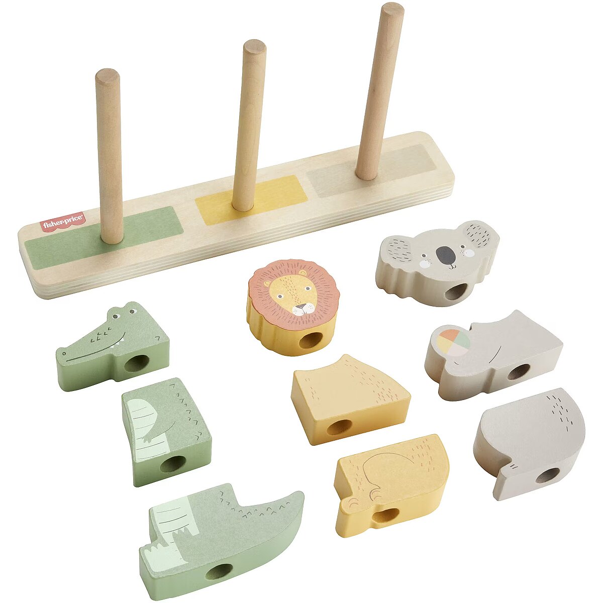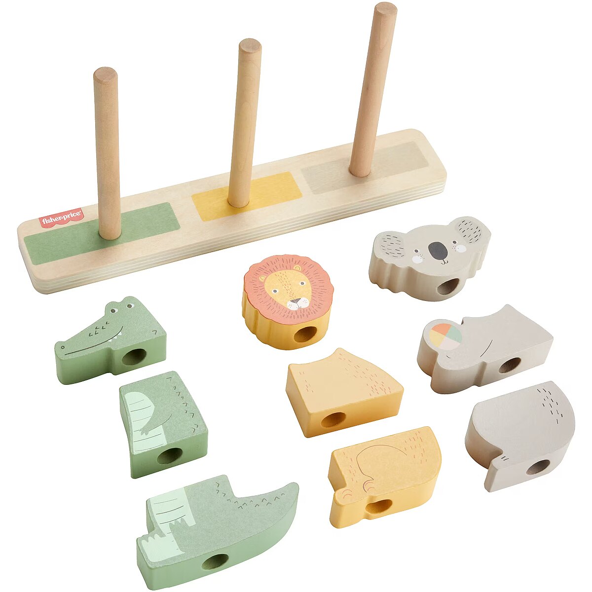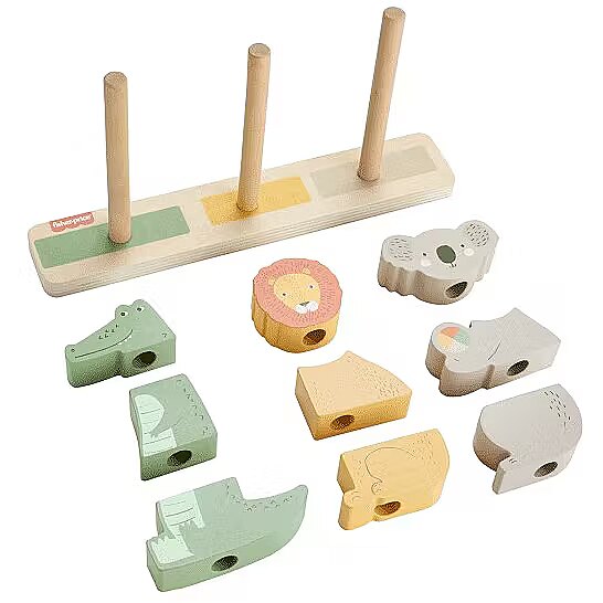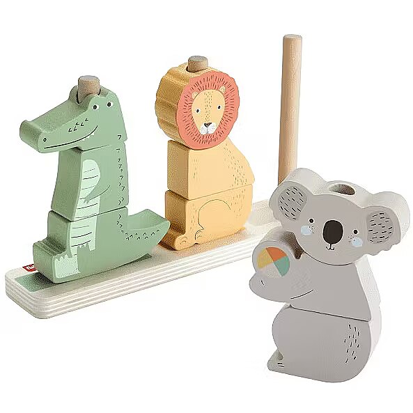 LongDesc - Let your child’s imagination run wild with the Wooden Stack & Sort Animals toddler toy from Fisher-Price! Kids can stack the pieces on the base to make an alligator, lion, koala, or any creature they can imagine! Plus, all that sorting and stacking helps them develop their fine motor and problem-solving skills. Made with wood from Forest Stewardship Council-certified sources (FSC-N004566) and decorated with non-toxic, water-based paints. Colours and decorations may vary.
