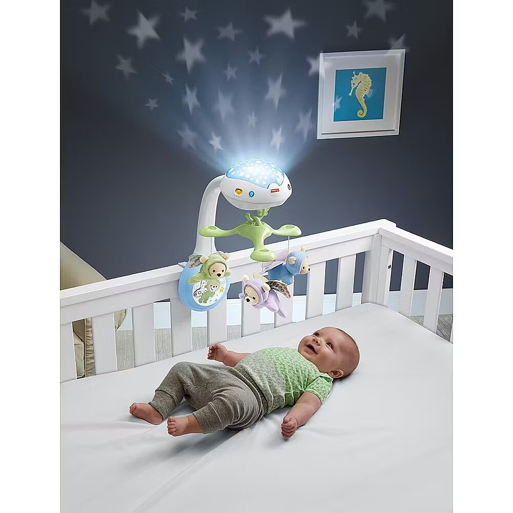 LongDesc - Create a sleepy environment for your little one with Fisher-Price Butterfly Dreams 3-In-1 Projection Mobile! This soothing night light projector turns any ceiling or wall into a starry night show with up to 30 mins of calming lullaby music, white noise or relaxing nature sounds. This white noise baby toy also stimulates your child's senses through soft lights and gentle, guiding their sensory development from birth. The slow and steady spinning motion of the adorable butterfly bears entertain and comfort little one to sleep, creating a secure environment they can truly relax in. Not to mention their sweet, smily faces that baby will love! Our helpful gifts for newborn baby are a considerate present idea for the new parents in your life as not only will their child love it, they'll love the bedtime assistance too! Check out the rest of our range for more baby toys 0-6 months, baby boy and baby girl toys 0-6 months, pram toys for babies 0-6 months, 3 months baby toys and gender neutral baby gifts.
