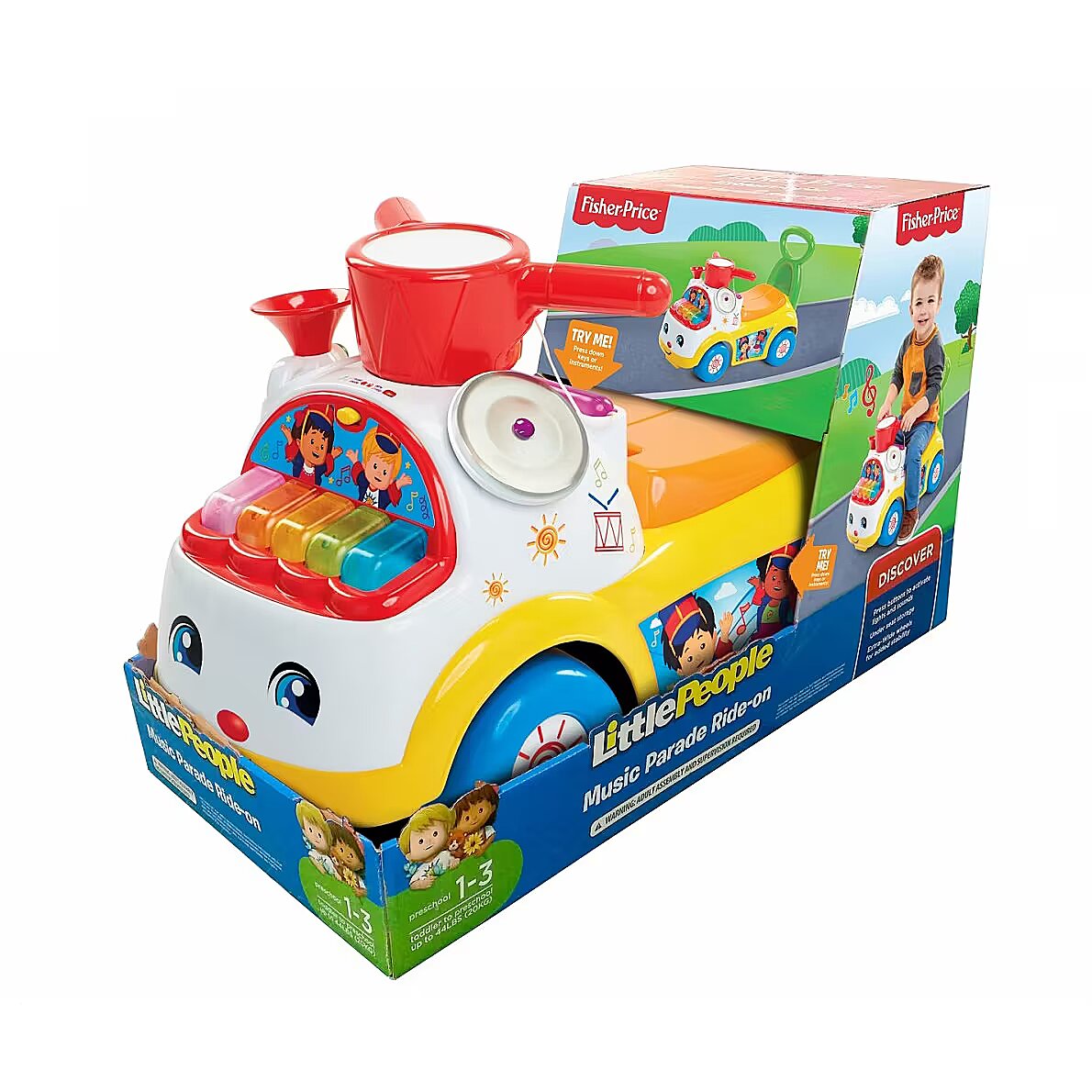 LongDesc - Little People toys from Fisher-Price have been delighting kids for generations! Little People friends live in a world of wonder and imagination, where so many first discoveries are made and the learning never ends. This iconic brand is pure fun and joy - with a constant emphasis on learning new skills! There is so much fun happening in the world of Little People from Fisher-Price.So much music! So much fun! The Little People Music Parade Ride-On for ages 1-3 features a convenient push handle, under seat storage, extra-wide wheels for added stability and fun lights and sounds! Touch the light-up keyboard to hear any of the five marching tunes or switch to play mode to create your own musical masterpiece. Add a symphony of sounds with drum, cymbal and removable trumpet! Hit the ignition button to hear the engine start, hit it again to hear it rev! C'mon the parade is about to begin!