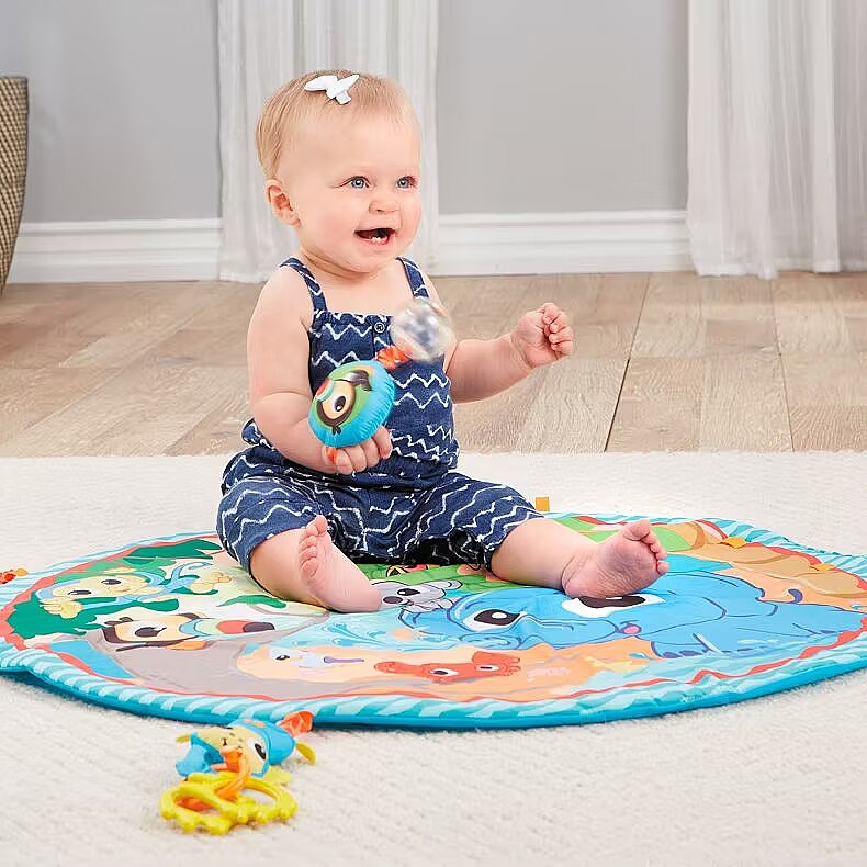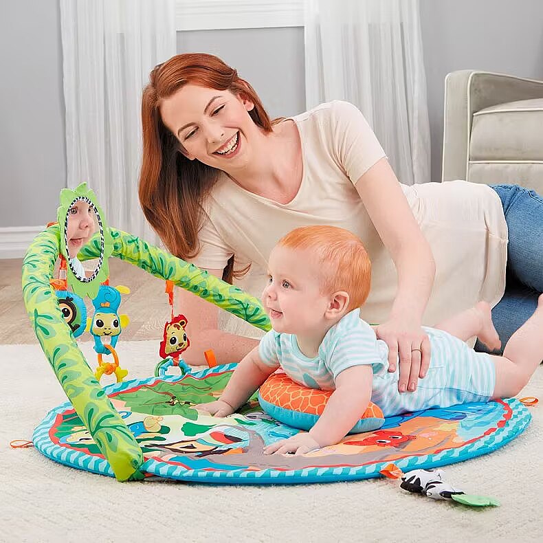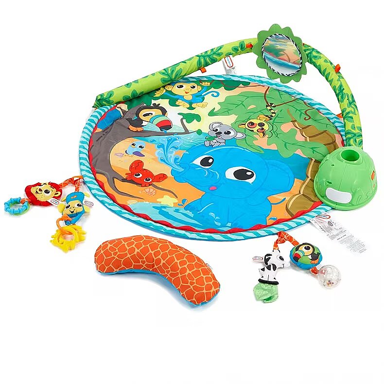 LongDesc - Little Tikes Baby products are “designed to develop” by addressing baby’s specific developmental needs through every coo, giggle, and stretch. The Little Tikes Baby Sway ‘n Play Gym is the only activity gym with an overhead bar that sways automatically! This soft mat gym is perfect for lay & play, tummy time, and sit & play fun. The unique sway bar gently swings the hanging toys, encouraging baby to eye track and reach for the toys. The Sway ‘n Play Gym features five toys with unique textures, as well as a tummy time pillow. This adorable gym will delight your baby as they begin to explore the world around them.Product Features: - 3-in-1 play patterns: Lay n Play, Tummy Time, Sit n Play- Lay ‘n Play – Overhead bar sways, while mirror and critters rock back and forth - Tummy Time – Move bar down for tummy time play with panel of mirror and link toys- Sit ‘n Play – Baby can sit next to bar to grasp and play with toys - Sway bar entertains your baby, encouraging them to track and reach for the hanging toys- Includes four hanging toys, adjustable mirror, tummy time pillow, and additional mat loops- Features 10 minutes of music and 9 different songs- Requires 4xAA batteries (not included)- Ages: 0+ years