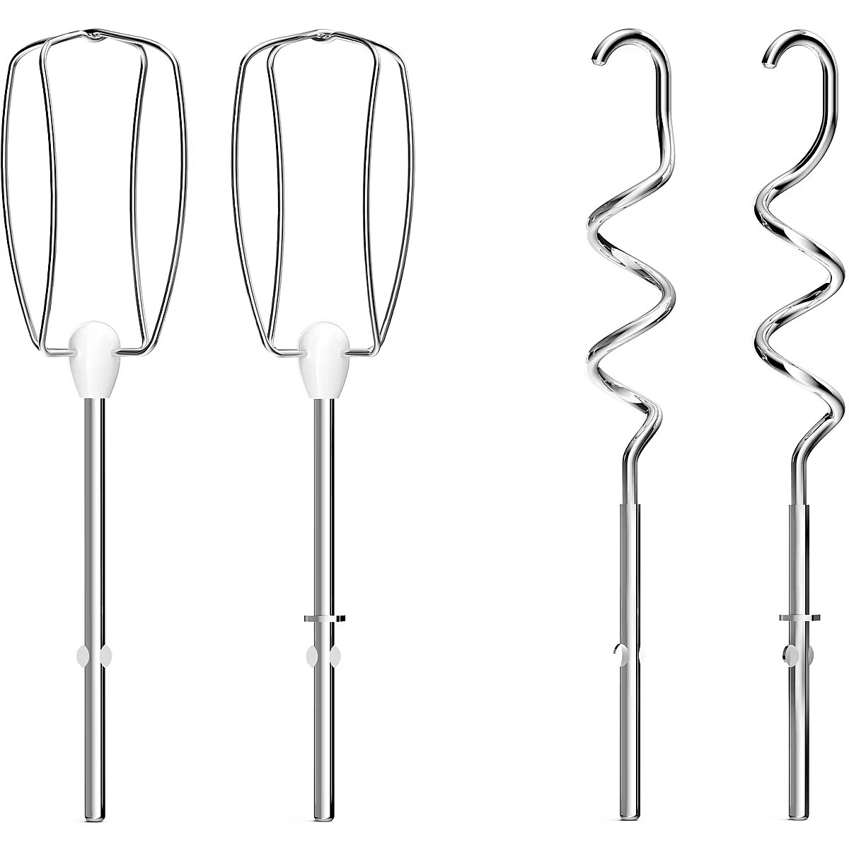 Šis rokas mikseris ir aprīkots ar 500W jaudīgu motoru, kas nodrošina pietiekamu jaudu dažādu sastāvdaļu apstrādei, sākot no vieglas krēma putošanas līdz pat mīklas mīcīšanai. Tam ir 5 ātruma iestatījumi un "Turbo" funkcija, kas ļauj precīzi pielāgot ātrumu atbilstoši konkrētajam uzdevumam un vajadzības gadījumā iegūt papildu jaudu. Komplektā ietilpst divu veidu nerūsējošā tērauda uzgaļi: putošanas slotiņas krēmu un olu baltumu putošanai, kā arī mīklas āķi mīklas mīcīšanai. Šie uzgaļi ir viegli piestiprināmi un noņemami, kā arī droši mazgājami trauku mazgājamā mašīnā. Ergonomiskais rokturis nodrošina ērtu satvērienu un kontroli lietošanas laikā. Matēti baltais korpuss piešķir ierīcei tīru un mūsdienīgu izskatu, kas lieliski iekļaujas jebkurā virtuvē. Tefal PrepMix HT450B38 ir uzticams palīgs, lai ātri un bez piepūles pagatavotu dažādus ēdienus un desertus.