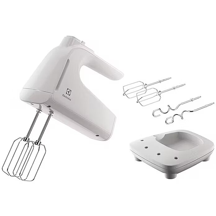 LongSummaryDescription - Electrolux EHM4W. Type: Hand mixer, Product colour: White, Mixer functions: Mixing. Blade material: Stainless steel. Power: 500 W, Power source type: Battery. Width: 205 mm, Depth: 90 mm, Height: 166 mm. Package width: 210 mm, Package depth: 112 mm, Package height: 228 mm