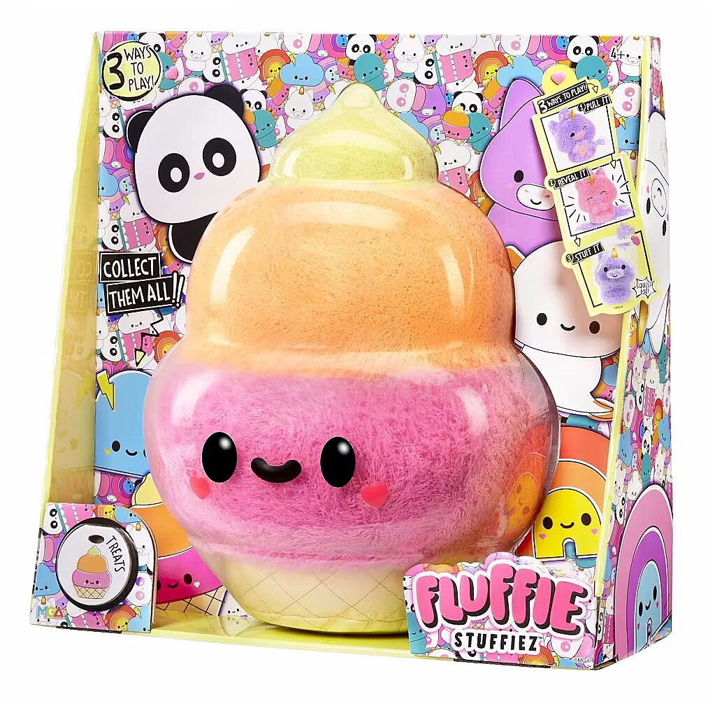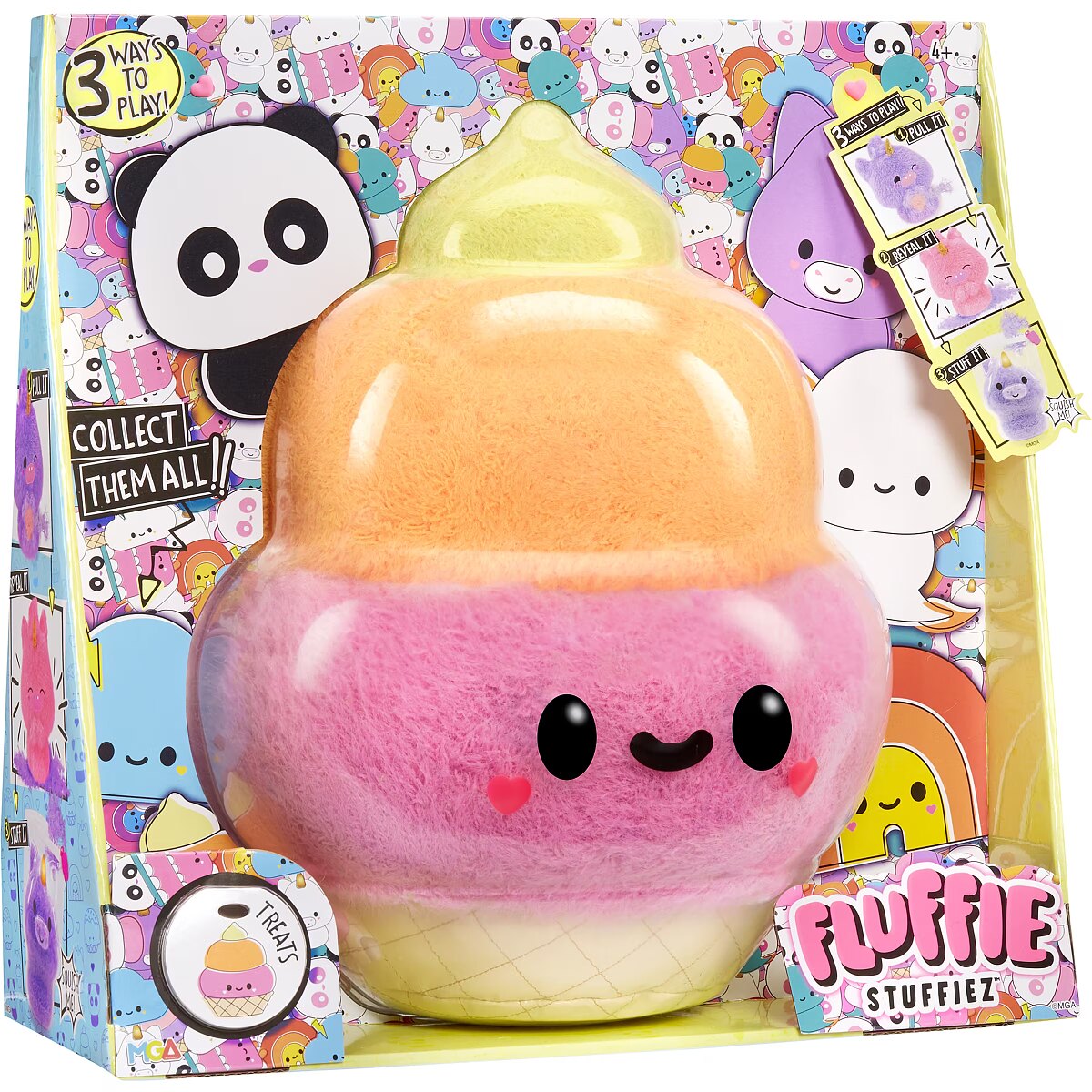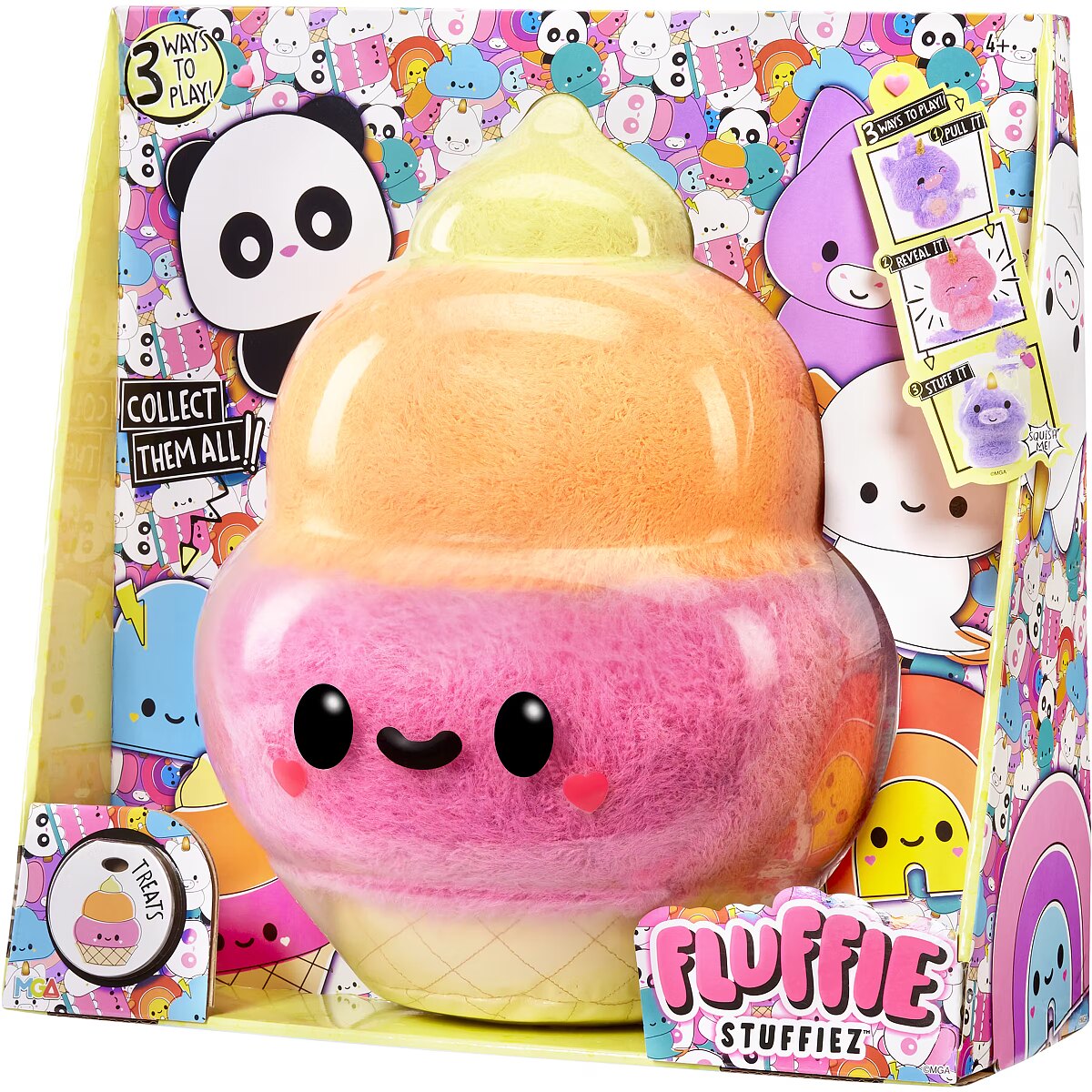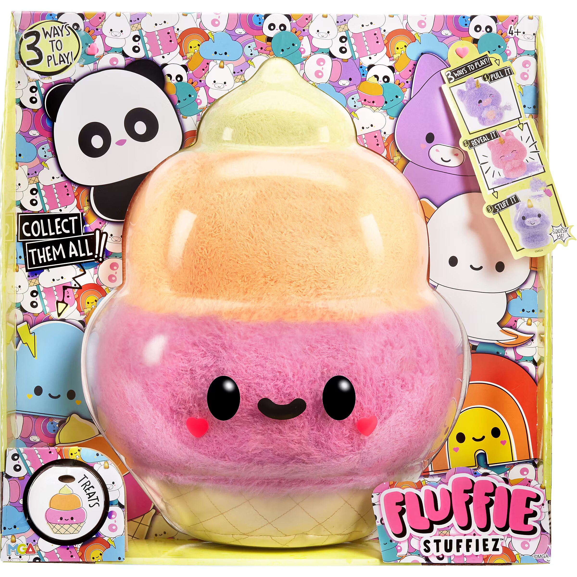 Description - Large Plush Fluffie Stuffez Asst - Ice Cream Squeeze them, take off the fur, stuff them and love them! Meet the craziest Fluffie Stuffez group yet. Incredibly expressive, soft and (sometimes) adorable - this furry group is full of SO MUCH feelings that it's bursting at the seams. Comfort them by taking off their fur and stuffing it back inside before they make a fuss! Product characteristics: Lots of fun shapes to collect (rainbow, ice cream, cloud, unicorn, kitten and oval) The mysterious color of the plush will appear after removing the top layer of fur Various colors of fur, plush and facial expressions Calming and soothing touch sensations when removing the fur Detailed embroidered eyes