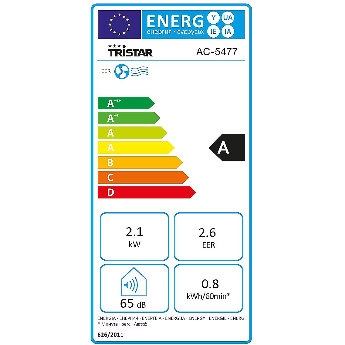ShortSummaryDescription - Tristar AC-5477 Air conditioner, A, 785 W, 240 V, 50 Hz, 3.5 A, Type F (CEE 7/4)