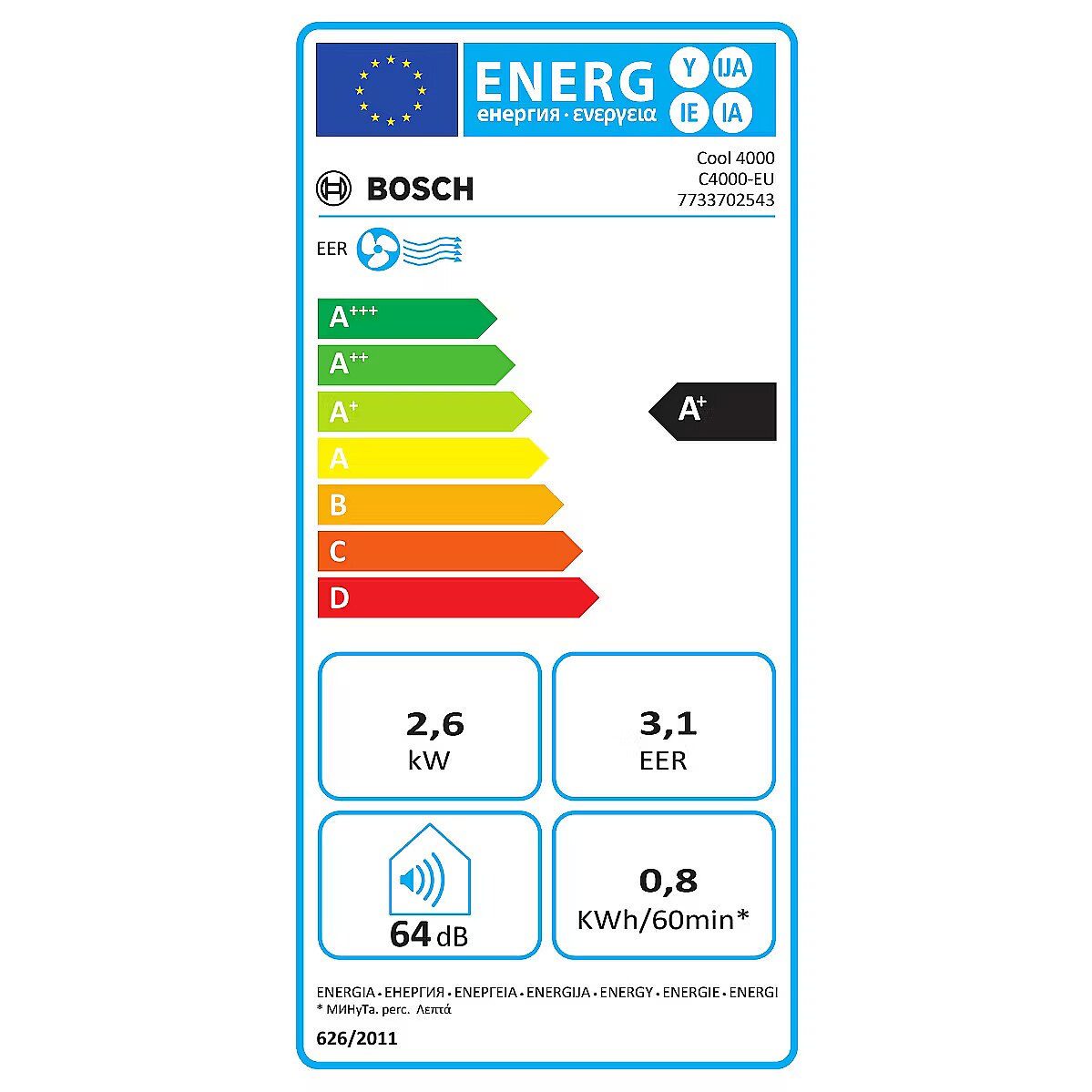 ShortSummaryDescription - Bosch Cool 4000, A+, 0.8 kWh, A+++ to D, White, LED, 460 mm
