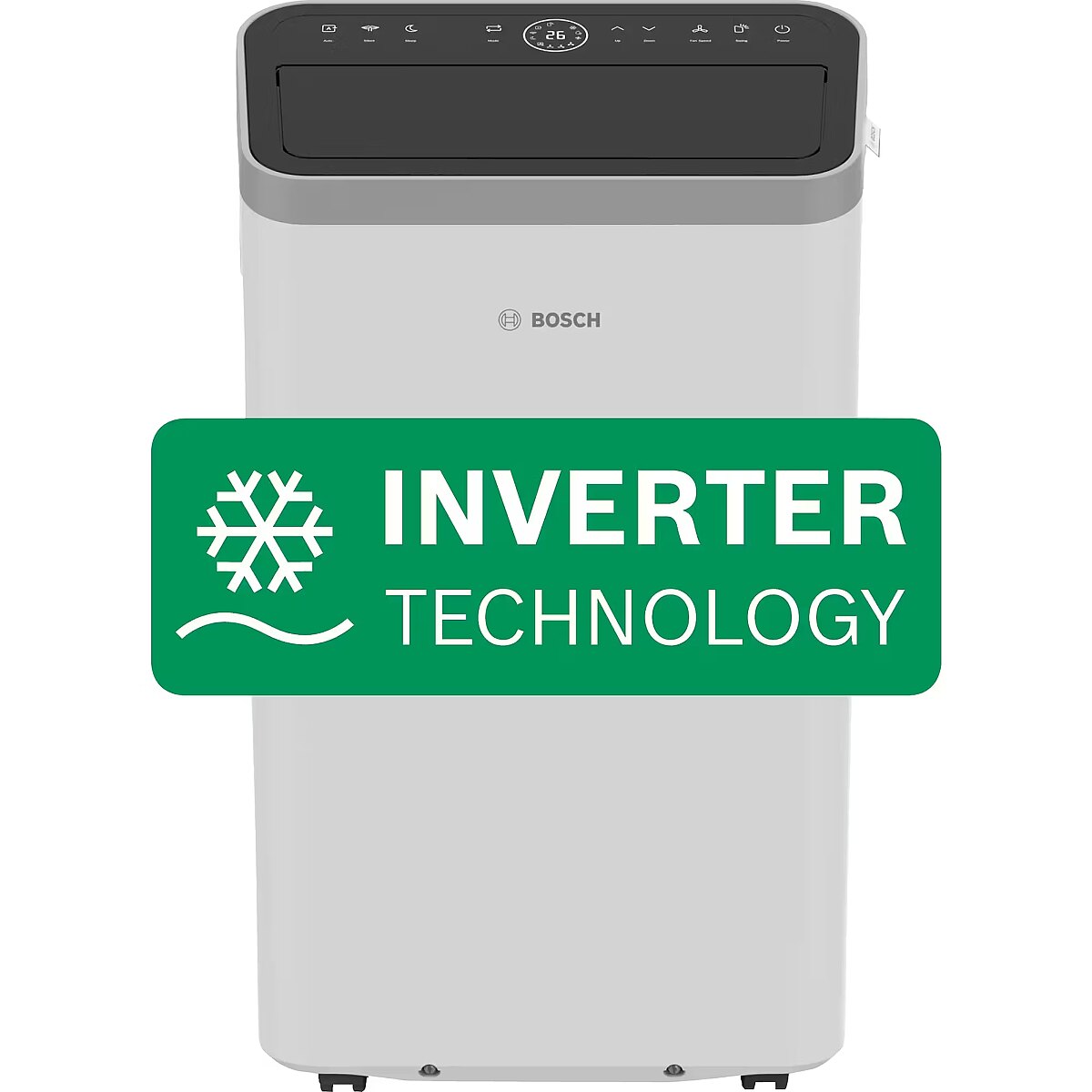 Technical details > Other features - Inverter technology allows faster cooling and precise temperature control for maximum comfort; Choose from three fully automated climate control modes to suit your daily situation (Bosch Easy Cool Select); Integrated handles and wheels make it easy to transport around the house; Humidification – removes up to 80 liters of water from the air every day
