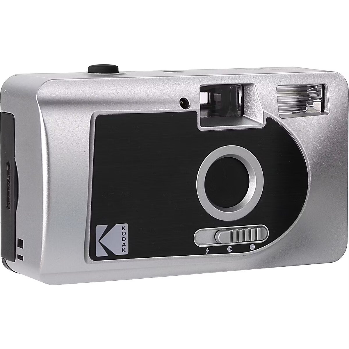 Compact and modern, the Kodak S88 features a motorized film winding system, enabling your film to be simply and automatically wound after each exposure. Once your film is loaded, press the shutter button repeatedly to move the film forward. To power its motor and flash, one AA battery (not included) is enough. The Kodak S-88 film camera is an easy-to-use, reusable 135 mm (35 mm) film camera that is perfect for amateur photographers who want to capture everyday memories. Compatible with 35mm colour and black & white ISO 200/400 films (not included) Built-in flash 31 mm fixed lens Shutter speed: 1/125s Fixed focus Power: 1 × AA battery (not included)