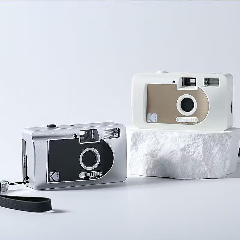The Kodak S88 is perfectly suited for taking vibrant, vintage-looking photos. The fixed focus lens ensures high sharpness. The built-in flash illuminates subjects, even in low light conditions. The Kodak S88 Motorized Film Camera is lightweight (123 g), so it’s easy to carry with you wherever you go. Available in 2 colours, beige or black, the S88 offers an improved, comfortable and stable grip. Its design, reliable performance and ease of use make it an essential choice for film photography enthusiasts. The ideal choice for enthusiasts