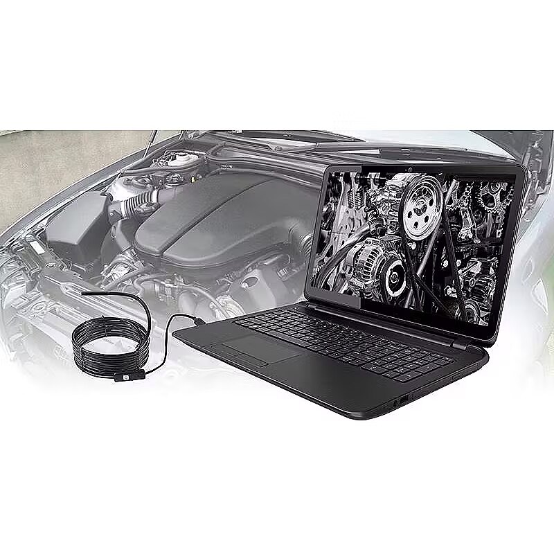 Description - Universal USB inspection endoscope It will work in hard-to-reach places such as sewage pipes, ventilation ducts, interior of machines, engines, vehicles, etc. A long (5m) and flexible connection cable will allow a small inspection camera (5,5mm) to be placed in a hard-to-reach place in order to obtain an image on a computer monitor or smartphone screen. 6 bright LEDs For a better preview effect, the camera is equipped with 6 bright LEDs with brightness adjustment on the cable. OTG adapter from micro USB to USB A It allows you to use the endoscope on a computer as well as an Android smartphone. Application for mobile devices If you want to use ENDOSCOPE USB with a mobile device under the control of the system, download the free OTG Endoscope application from the Google PLAY store Computer software If you want to use ENDOSCOPE USB with a PC, install ViewPlayCap from the supplied CD or download it from here. IMPORTANT. The device running Android must be equipped with a USB OTG (HOST USB) socket. Additional accessories such as a mirror, a hook and a magnet can be attached to the probe.