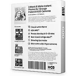 description_en - Black & White 600 film is a classic instant film for vintage Polaroid 600 cameras (but it works with i-Type cameras as well). It captures your photos in deep blacks, bright whites and a million shades in between, and it's great for everything from studio portraits to late-night parties, because everyone looks good in black & white (even after one too many cocktails). 8 exposures per pack Black & white instant film for Polaroid 600 and i-Type cameras Format: 8.8 × 10.7 cm Image area: 7.9 × 7.9 cm Finish: Glossy Development: 10 minutes Built in, long lasting battery to power the camera and flash