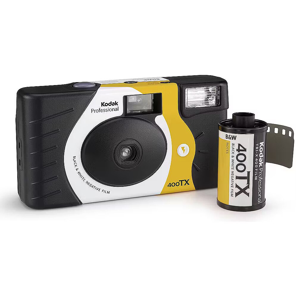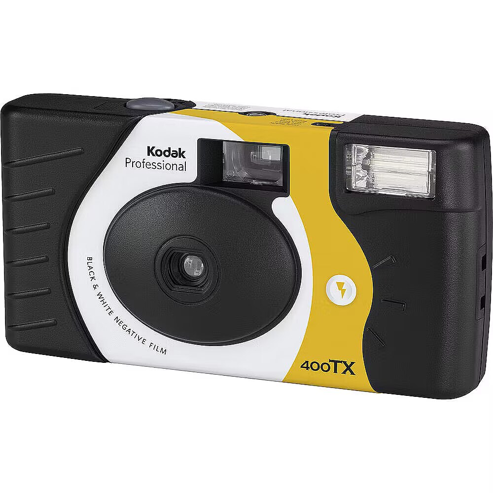 description_en - Ready to shoot with the push of a button, this Kodak Tri-X 400 Single-Use Flash Camera is pre-loaded with a 27-exposure roll of highly versatile Tri-X 400 black-and-white negative film, making it ideal for parties, events, weddings, and more. The camera has a wide-angle lens with a fixed focus range and fixed shutter speed for simplicity, and it includes a clear window viewfinder for lining up your shots. For indoor and low light conditions, the camera also includes a built-in flash, which automatically recharges after use.