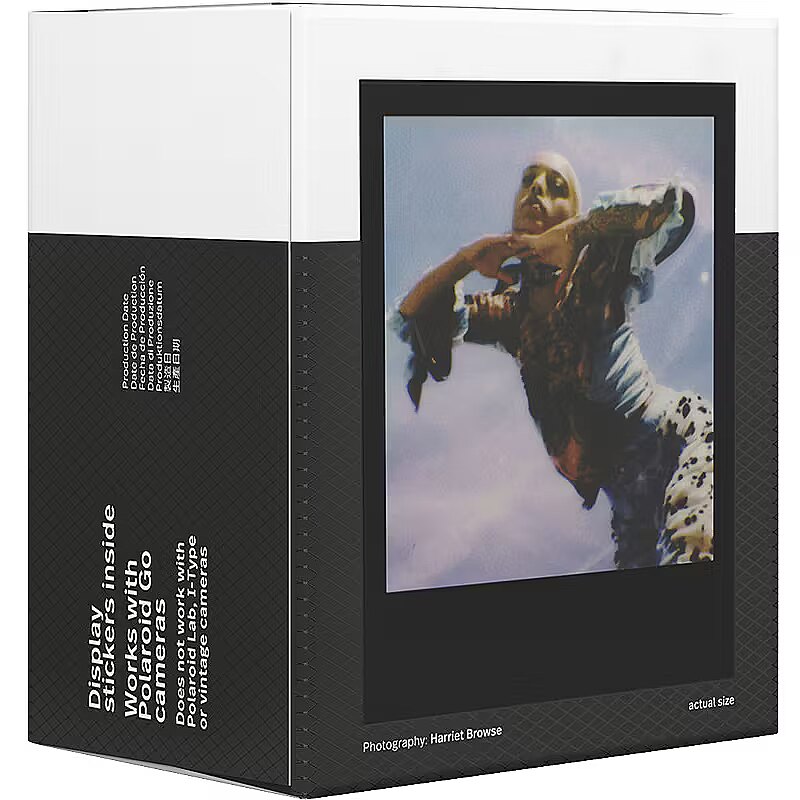 description_en - Create big, smaller, with the new Polaroid Go film. 16 iconic Polaroid frames, but tiny—cute, huh? This little film is ready to capture your big ideas. Compatible only with the Polaroid Go camera. 16 photos per double pack Black frame Battery-free Format: 66.6 × 53.9 mm Image area: 47 × 46 mm Development time: 10–15 minutes Compatible only with the Polaroid Go camera