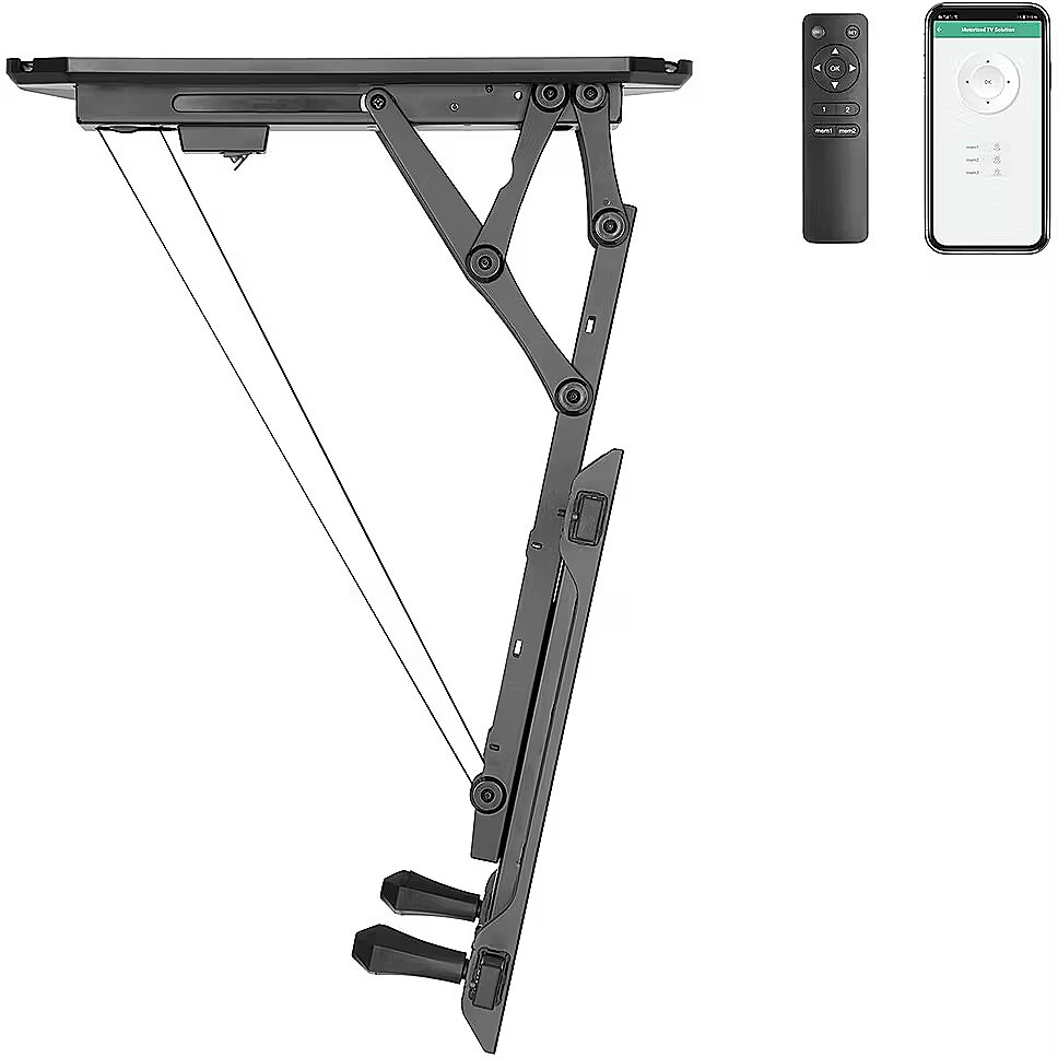 Other features - Electric mount for TVs with a screen diagonal of 32 to 70" Maximum load: up to 35 kg Minimum/Maximum horizontal spacing: 200/600 mm Minimum/Maximum vertical spacing: 100/400 mm Installation on flat and sloping ceilings - Solid metal construction, very easy installation Remote control with memory for two selected positions Possibility of control using the free Tuya application Powder coating VESA: 200x100, 200x200, 200x400, 300x200, 300x300, 400x200, 400x300, 400x400, 600x400 mm