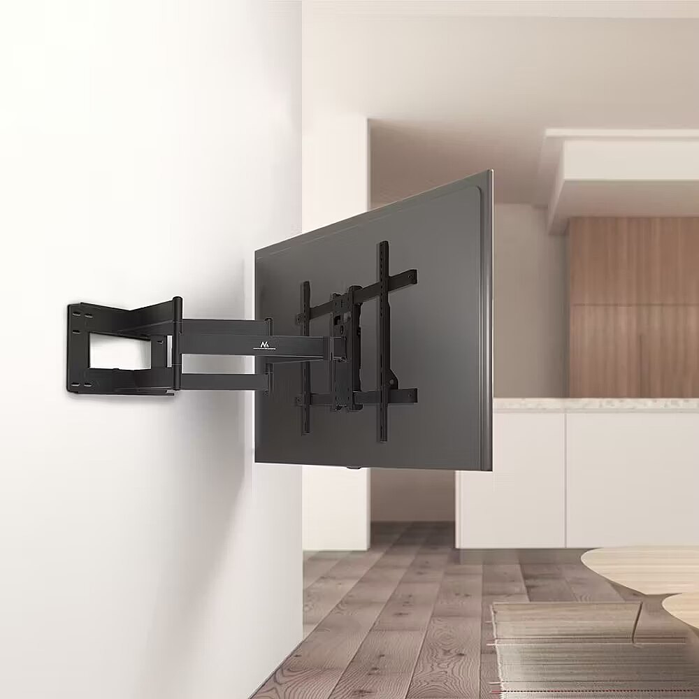 - Manufacturer: Maclean - Model: MC-986 - Maximum load: 55 kg - Adjustable tilt: +5° to -100° - Minimum/Maximum horizontal spacing: 200/800 mm - Minimum/Maximum vertical spacing: 200/400 mm - Possibility to level the TV after mounting: +5/-5° - Adjustable distance from the wall: from 80 mm to 915 mm - Solid metal construction, very easy installation - Designed for TVs with screen diagonal: 37" to 85" - Comes with a set of mounting screws for the wall and for screwing the TV and Polish installation instructions - Powder coating (black color) - VESA: 200x200, 300x200, 400x200, 300x300, 400x300, 400x400, 600x300, 600x400, 800x400