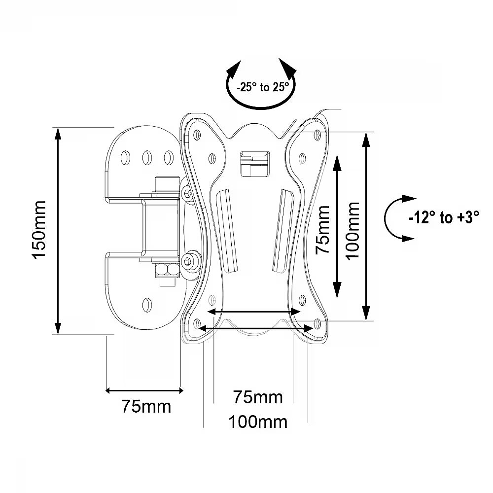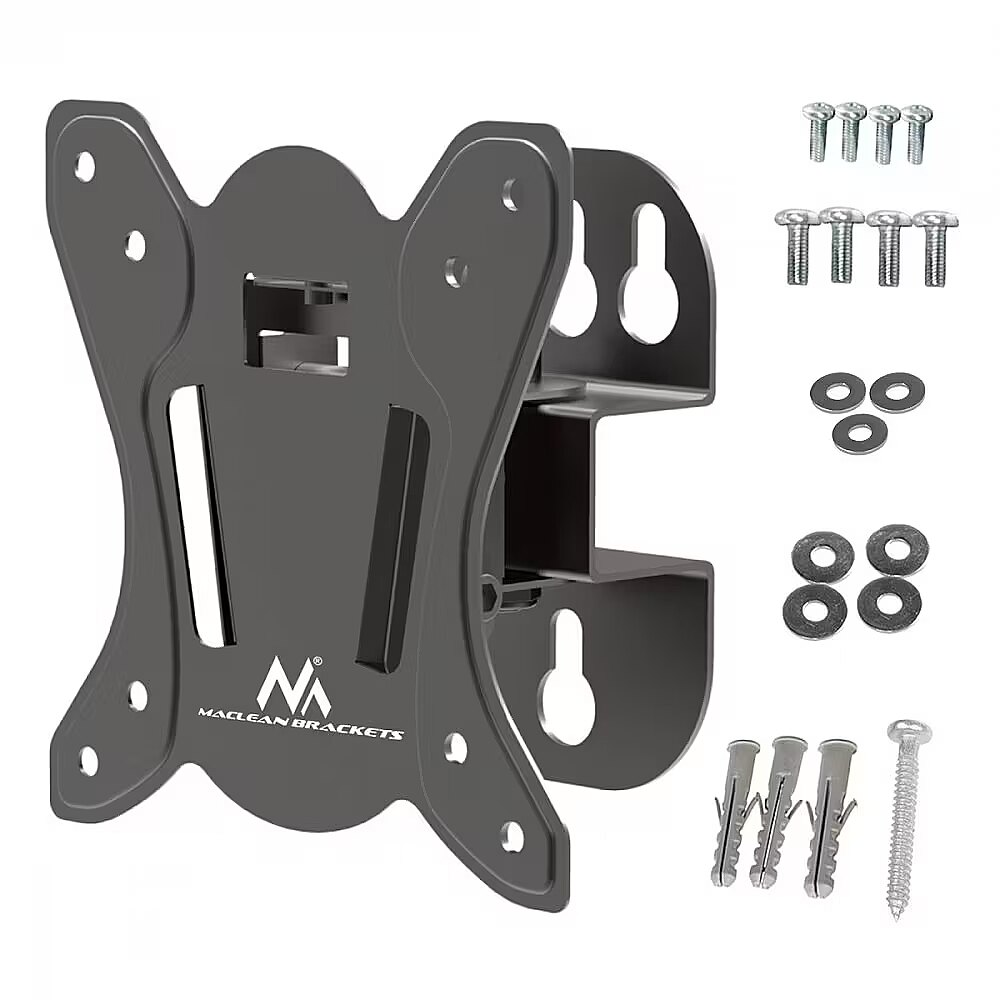 Other features - - Manufacturer: Maclean - Model: MC-415 - Maximum load: 30 kg - Adjustable tilt: -12° to +3° - Adjustable rotation: -25° to +25° - Powder coating - Color: black - Distance from wall: 75 mm - Designed for TVs 13" to 32" (or larger if their weight does not exceed 30 kg and the VESA standard is compatible with the mount) - Comes with a set of mounting screws for the wall, as well as for screwing the TV and installation instructions - VESA: 75x75, 100x100 mm