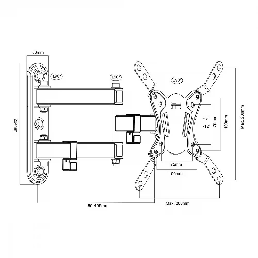 Other features - - Manufacturer: Maclean - Model: MC-418 - Maximum load: 30 kg - Adjustable tilt: -12° to +3° - Adjustable rotation: -90° to +90° - Powder coating - Color: black - Adjustable distance from wall: 65-408 mm - Designed for 23" to 43" TVs (or larger if their weight does not exceed 30 kg and the VESA standard is compatible with the mount) - Comes with a set of mounting screws for the wall, as well as for screwing the TV and installation instructions - VESA: 75x75, 100x100, 200x200 mm