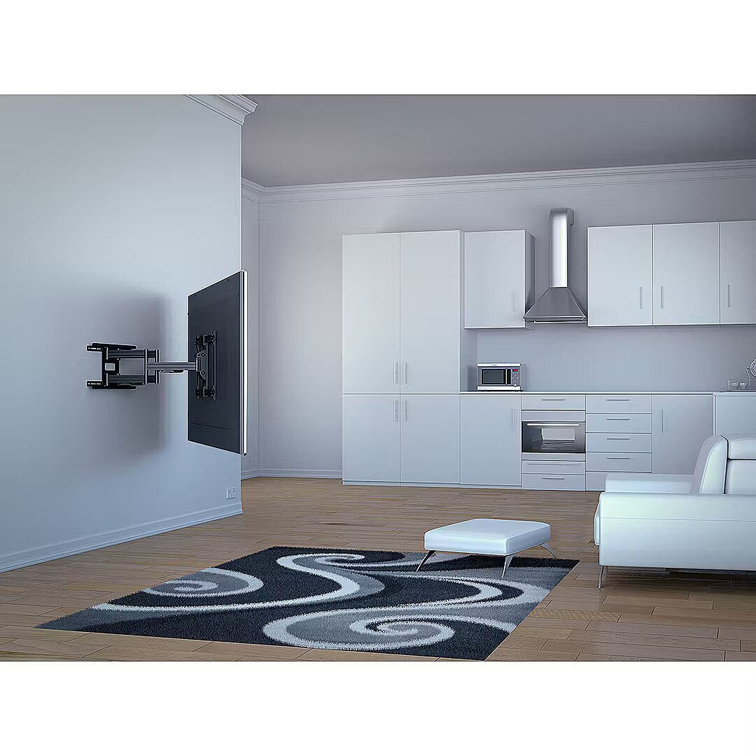 LongDesc - This Full Motion Wall Mount with dual extension arms will mount most flat-panel TV up to 125kg. With its ingenious design it allows even the largest TVs to extend up to 71cm from the wall, retract, tilt, and swivel with ease. Using smart tilting technology we allow effortless viewing angle with a tool less manual adjustment.