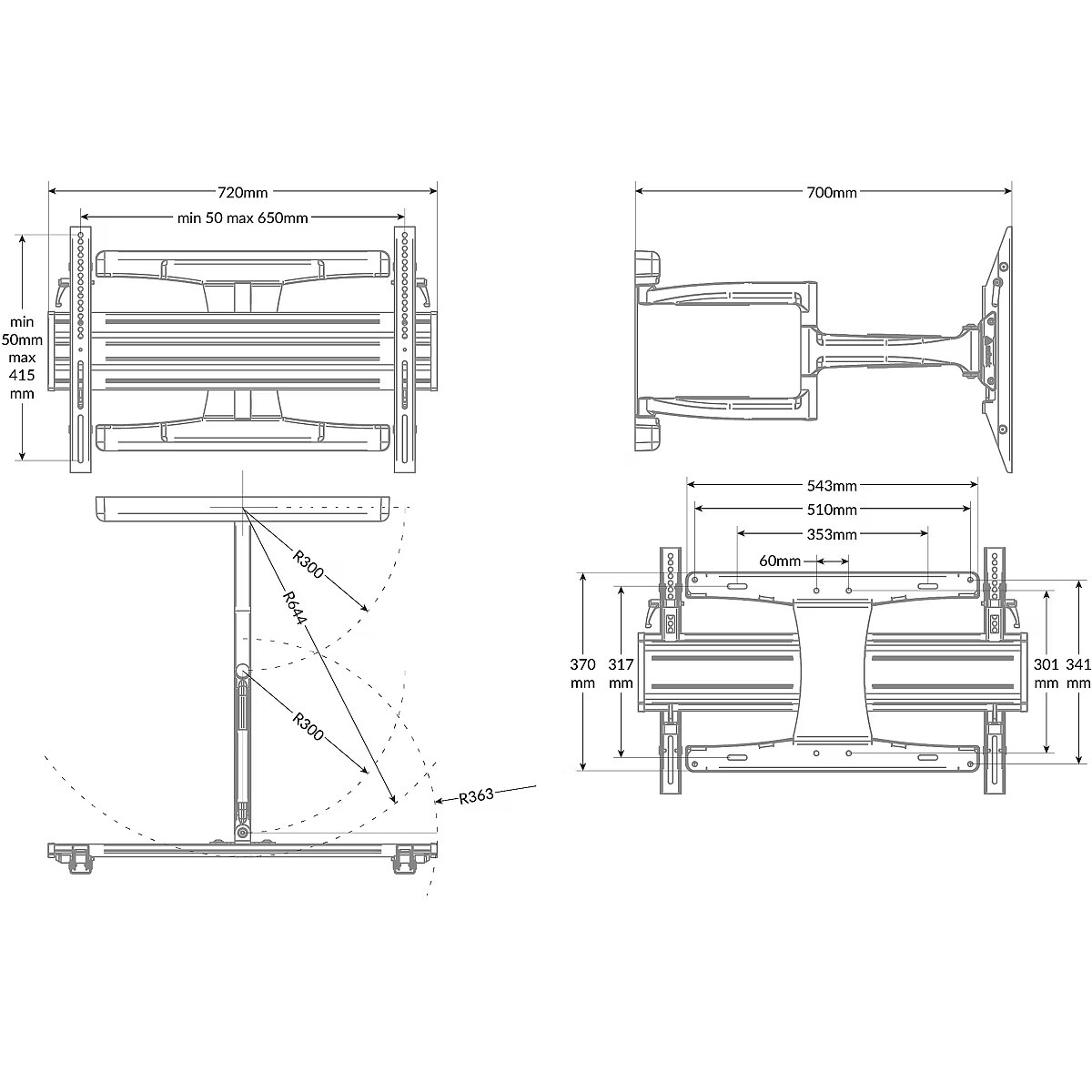 Other features - Maks. odległość od powierzchni mocowania: 700 mm Min. odległość od powierzchni mocowania: 100 mm