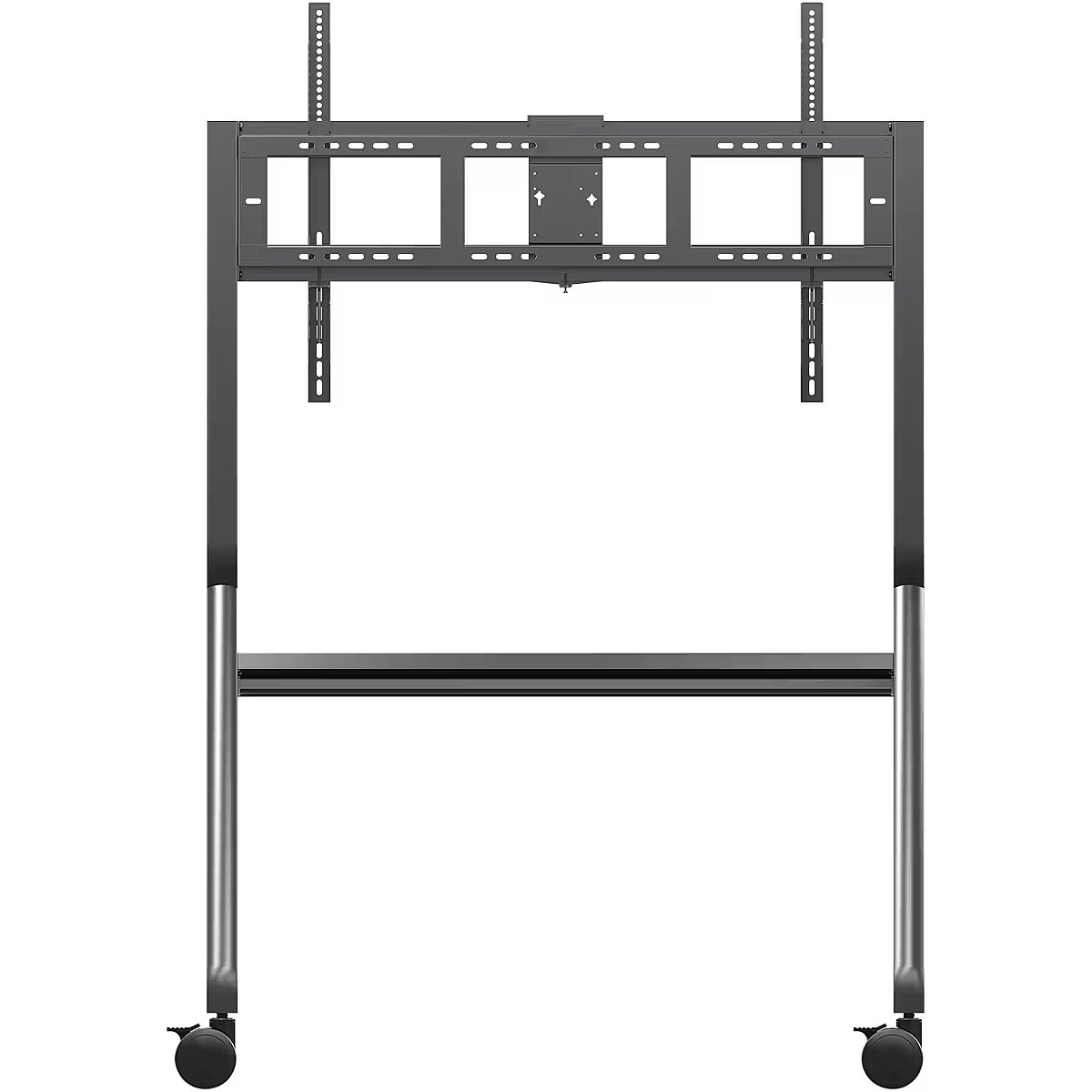 LongDesc - The ViewSonic VB-STND-009 trolley cart is designed for ViewBoard Interactive Flat Panel Displays ranging from 55” to 105,” and securely accommodates any large format display weighing up to 120kg. Its streamlined, height-adjustable design and easy installation enable seamless integration into any space. Featuring 360° silent wheels with quick-release brakes, this cart offers effortless, stable, and secure mobility of presentation displays from one room to another.