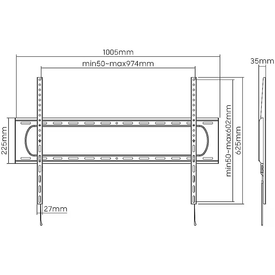 VESA support : 50 x 50, 75 x 75, 100 x 100, 100 x 150, 100 x 200, 150 x 150, 200 x 100, 200 x 200, 200 x 300, 200 x 400, 300 x 200, 300 x 300, 300 x 400, 400 x 300, 400 x 400, 400 x 600, 600 x 200, 600 x 300, 600 x 400, 600 x 600, 700 x 400, 800 x 400, 800 x 500, 800 x 600, 900 x 600