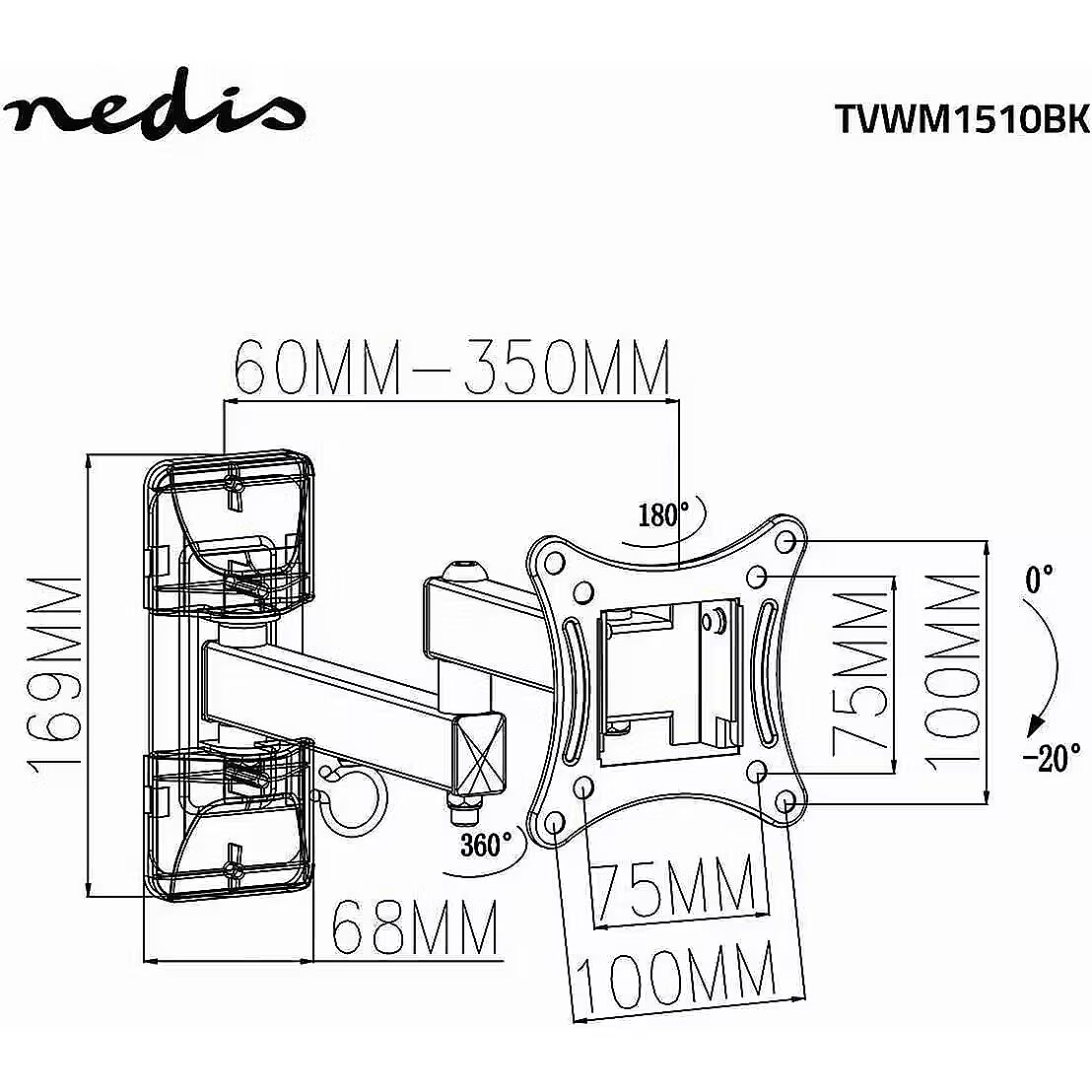 title_ru - Nedis TVWM1510BK TV настенный поворотный кронштейн для телевизоров до LED / LCD / PLASMA TV 13-27 / 15kg