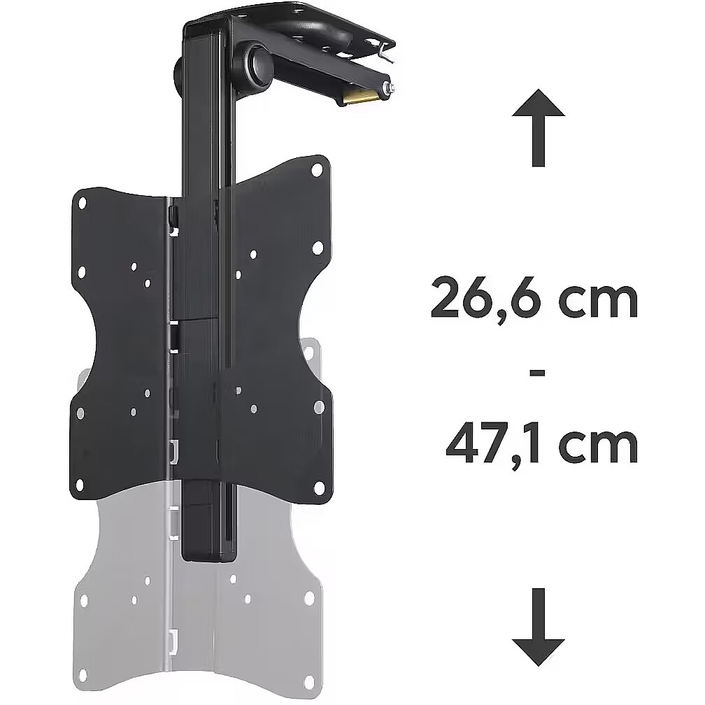 LongDesc - 10-year warranty10-year warranty: a warranty promise on longevity that goes far beyond the statutory guaranteeTested qualityMake a safe choice with our tested safety: exacting stress, stability and functional tests guarantee high quality standards100°-swivel jointAlways the right viewing angle: the TV can be turned in the preferred direction thanks to the 100°-swivel jointStepless height adjustmentEnjoy the best views: the TV ceiling bracket is infinitely height-adjustable, so you can move your TV set to the perfect height for that real home cinema feelingEasy-Fix systemEasy-Fix system for simple and fully adjustable orientation of your TVSpace-saving installationSpace-saving integration into your individual living environment: with the stable universal TV wall bracket for sloping roofs and ceiling mounting, the TV can be placed anywhere in the room in a free-floating and flexible mannerIncludes mounting materialEverything included: with the diverse mounting accessories, including high-quality Fischer plugs, you can get started straight awayFSCFSC-certified: the paper and cardboard used in our packaging comes from sustainable forest management - enabling us to take a resources-sparing approach to the raw material of woodPlastic-freePackaging with a clear conscience: our packaging is 100% plastic-free, enabling us to reduce plastic waste and increase its recyclability