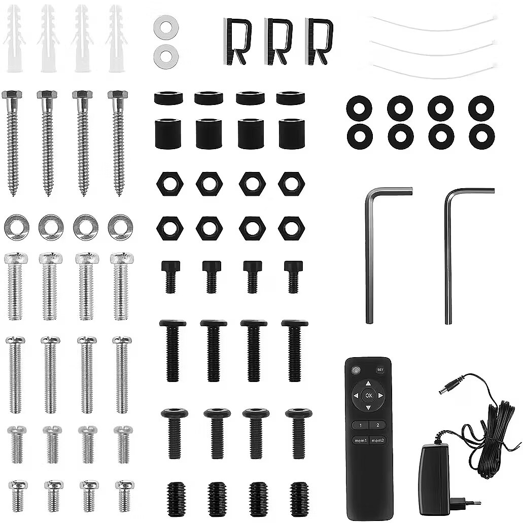 Accessories included - Maclean MC-110 T electric TV mount  Set of mounting screws for ceiling and for screwing the TV  Mounting accessories Installation instructions  Manufacturer's packaging