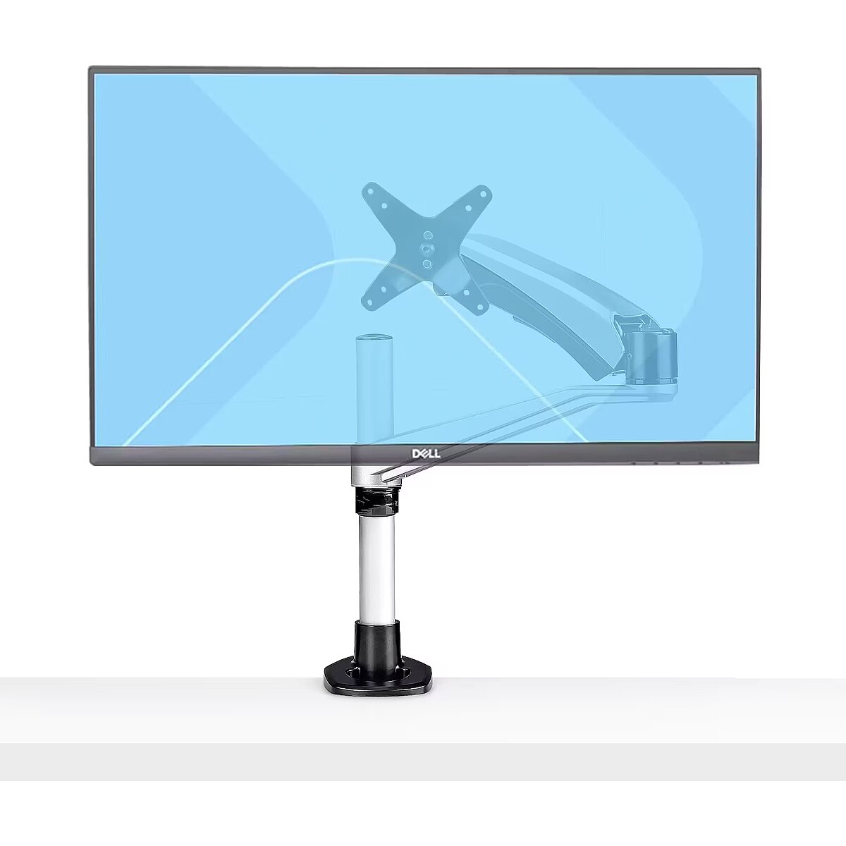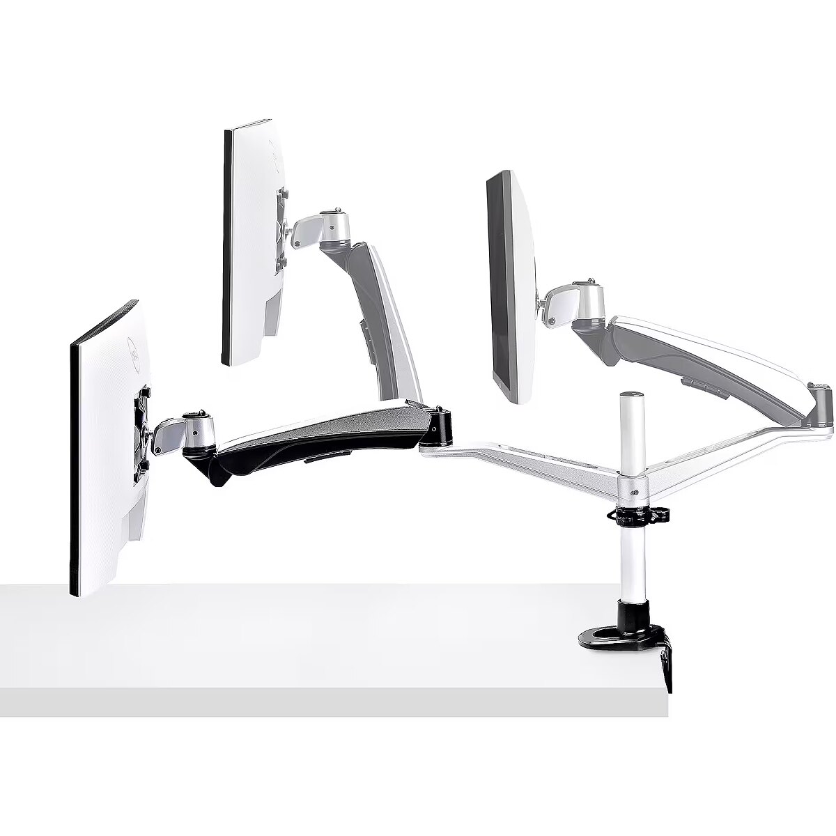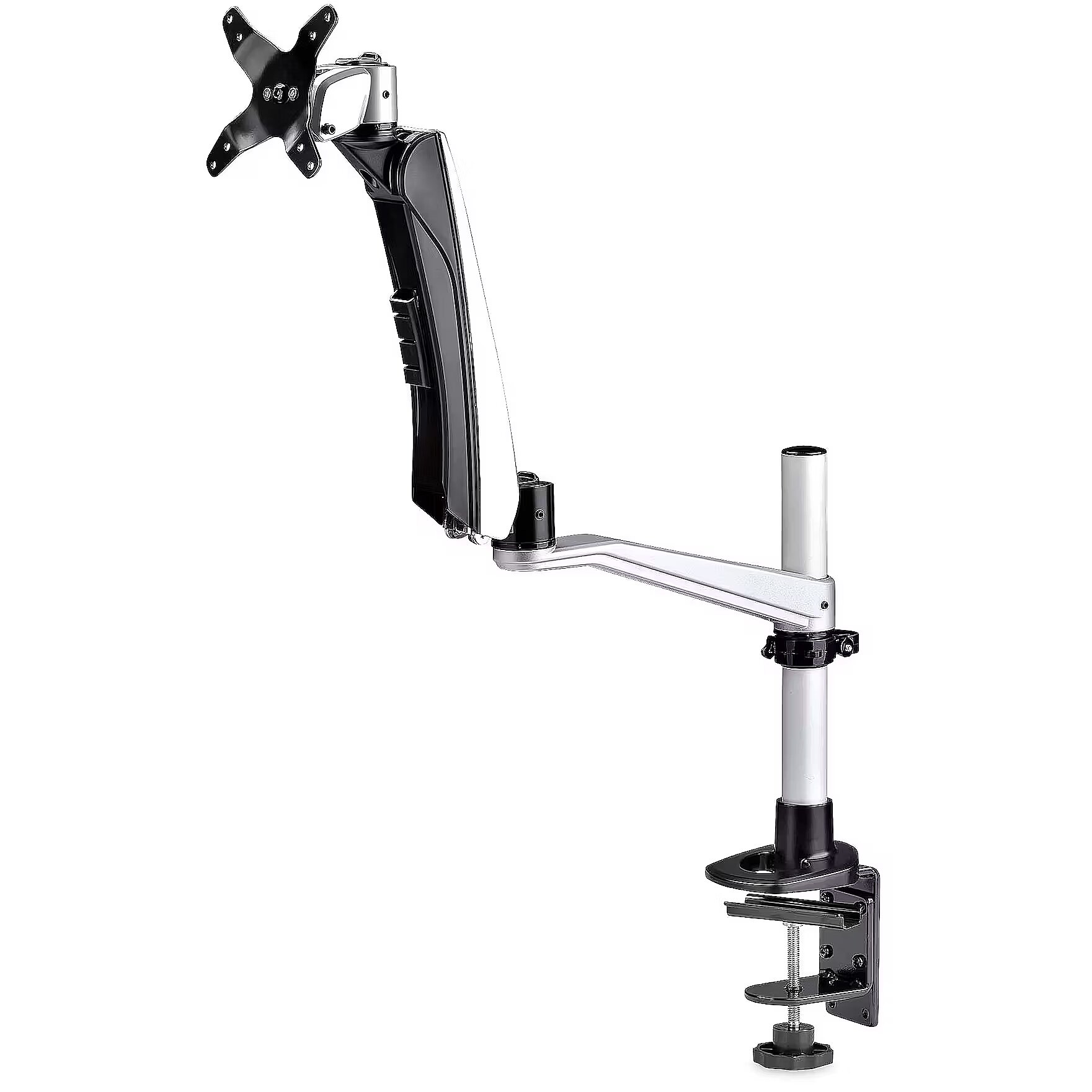 LongDesc - Single monitor desk mount with support up to 30" monitors and height-adjustable articulating armThis monitor desk mount is designed to support up to 27-inch 16:9 or 30-inch 21:9 display, creating an ergonomic area for productivity. The mechanical spring-assisted arm enables multiple adjustment to suit different ergonomic needs.Height Adjustment with One Smooth MotionThe spring arm enables toolless height adjustment of up to 10.6in (270mm) with effortless one-touch motion. Adjust the height of the arm along the 10.2in (261mm) pole. The arm can extend up to 22.2in (590mm) from the pole.Toolless AssemblyThe quick toolless slide and click design makes assembly quick and simple. The pre-assembled desk clamp and pole can be easily secured by hand to the desk, saving total installation time.Range of MotionThe articulating arm enables toolless adjustments of +/-180° horizontal swivel, 105° tilt, 240° pan, and 360° screen rotation on the VESA plate for portrait or landscape orientations. This flexibility enables users to customize the screen placement for maximum productivity and comfort.Durable ConstructionWith its steel and aluminum construction, the premium monitor arm supports a weight capacity of 19.8 lb. (9 kg). Die-cast aluminum arms with mechanical springs that passed 10,000 cycle test and are backed for 10 years for long-lasting performance.Cable ManagementTo maintain an organized workspace, the adjustable arm features a cable management channel along the underside to keep cables out of sight, reducing clutter and contributing to a tidy setup. A cable clip on the pole also helps maintain an organized workspace.The StarTech.com Advantage