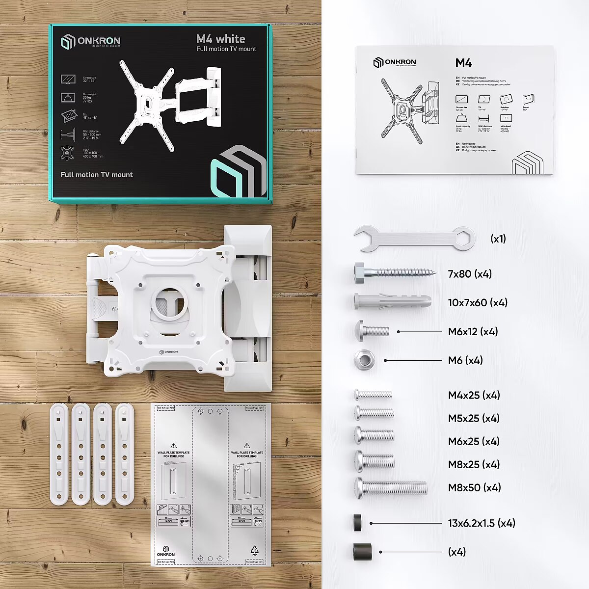 Description - ONKRON Tilting and swiveling Wall Mount for 32"- 65" screen, max 35 kg, VESA up to 400x400