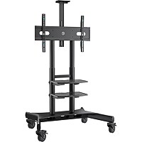 Description - For TV Screen 50"-86"Max. TV weight: 90.9 kgMax. total load: 105.9 kgVESA: 200x200, 200x300, 200x400, 200x500, 300x200, 300x300, 300x400, 300x500, 400x200, 400x300, 400x400, 400x500, 500x200, 500x400, 500x500, 600x200, 600x300, 600x400, 700x400, 700x500, 800x200, 800x400, 800x500 mmHeight adjustment: 1350-1650 mmCable management inside the columnsAdjustable shelf height2 AV shelves includedCaster wheels with locking mechanismMaterial: base, columns, VESA panel - steel; shelf - plastic