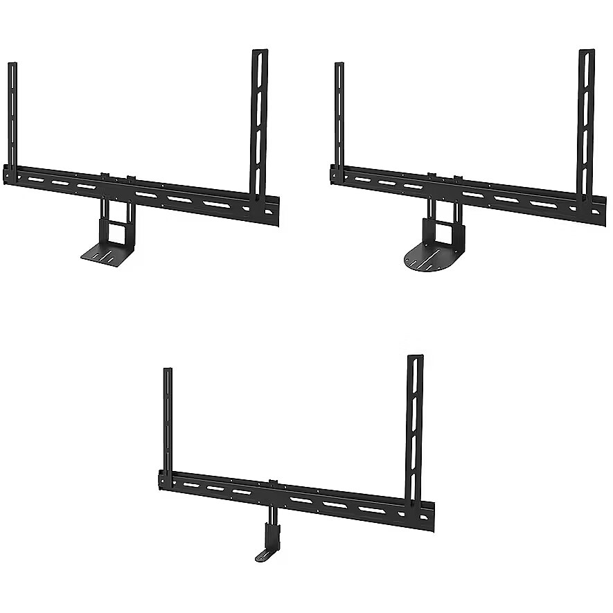 LongDesc - The Neomounts AV30-500BL is a universal videobar kit designed for displays from 43" and larger, with VESA hole patterns ranging from 200x200 up to 800x600 mm. Built for durability and versatility, the kit supports devices up to 10 kg and can be installed either above or below the screen. Both the videobar support and the backplate brackets are height-adjustable for maximum flexibility.Compatible with most videobars*, PTZ cameras, and soundbars, including Logitech Rally speakers, the AV30-500BL ensures broad applicability. The mounting holes allow width and height variation, while the VESA frame adjusts in both height and width (200/400/600/800). The kit can be used on wall, floor, desk, or ceiling mounts. Despite its versatility, installation is straightforward, aided by ruler-guided alignment for a seamless fit.* The Neomounts AV30-500BL videobar kit is truly universal, compatible with any videobar regardless of brand or model, provided it fits within the bracket?s range (see line drawing). In addition, the kit is specially designed for the following videobars:- Bose Professional VB1 and VB-S- Neat Bar (gen 1) and Bar Pro- Poly Studio USB, Studio R30/X30/X32, Studio X50/X52/V52, Studio X70/X72/V72 and Studio V12- Jabra Panacast 50/40- Logitech Meetup, Meetup 2, Rally Bar, Rally Bar Mini, Rally Bar Huddle and Rally Plus- Cisco Webex Room Kit Plus- Yealink MSpeaker II, MeetingBar A30/A40/A50, UVC20/UVC30 Room/UVC34/UVC40 and MeetingEye 400/600- AVer VB350 and VB370A- Barco ClickShare Bar (Pro)- Maxhub Xbar U50/V50/W70 and UC S05/S07/S10/S10 Pro/S15- Predia Connect Camera- Biamp Parlé ABC 2500(a), VBC 2500(a)/2800 and SBC 2- Lenovo ThinkSmart OneFor detailed compatibility with specific models or mounting sizes, please refer to the online manual.