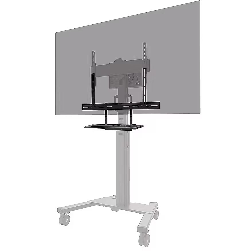 LongDesc - The Neomounts AV40-500BL is a universal keyboard shelf kit designed for installation beneath displays from 43" and larger, supporting VESA hole patterns from 200x200 up to 800x600 mm. Featuring a shelf size of 27x60,3 cm and a maximum load capacity of 2,5 kg, it offers ample space for both keyboard and mouse.For optimal flexibility, both the shelf support and backplate brackets are height adjustable. The AV40-500BL mounting holes allow width and height variations, while the VESA frame adjusts in four positions (200/400/600/800). The kit is compatible with both wall and floor mounts. Installation is quick and straightforward, with ruler-guided alignment ensuring a precise and seamless fit.For detailed compatibility with specific models and mounting sizes, please consult the online manual.