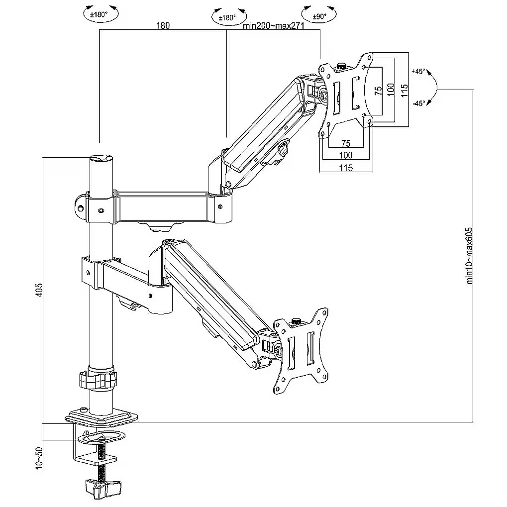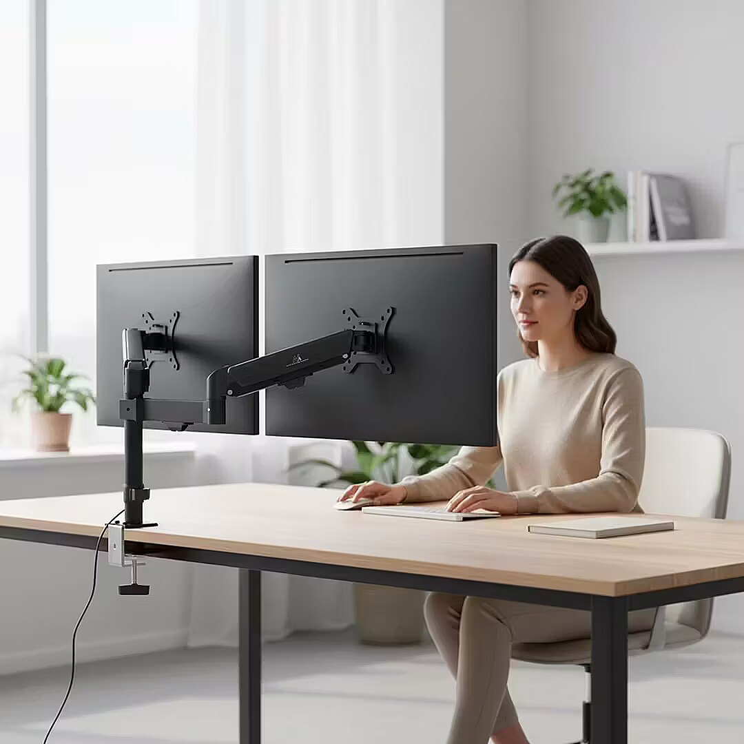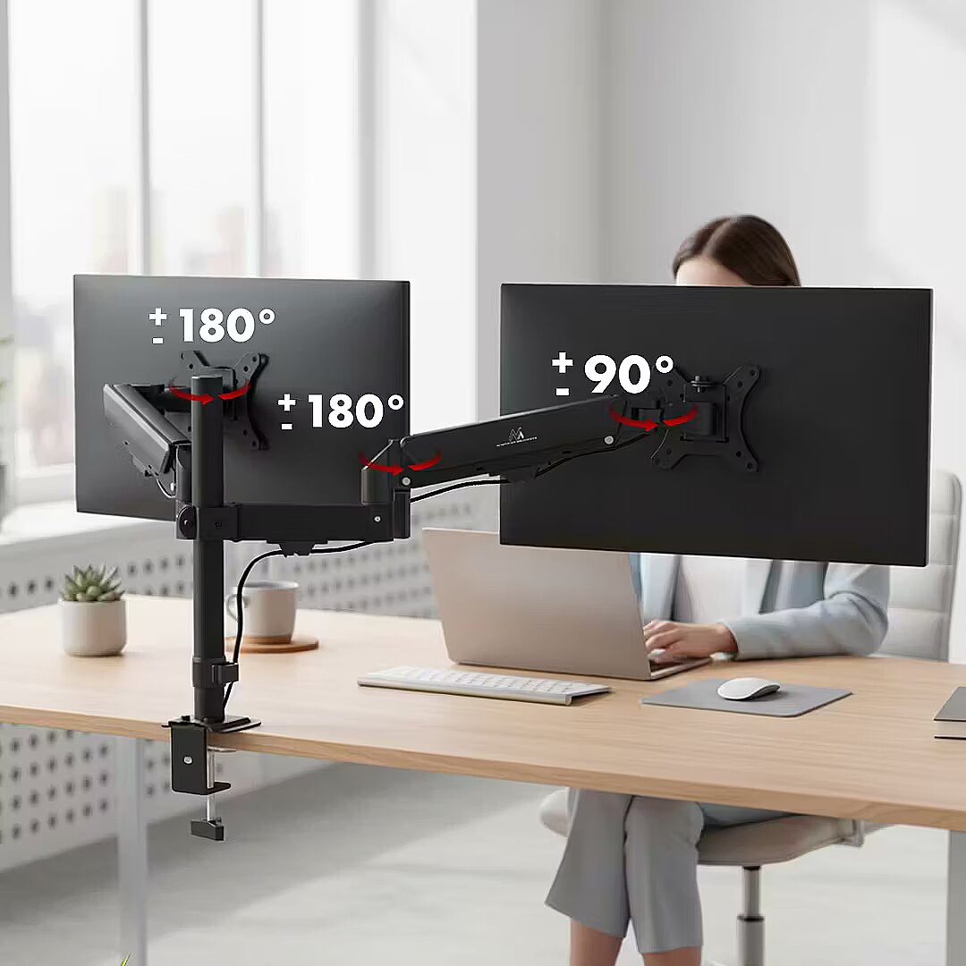 productName - Maclean 2 monitor mount, gas spring, 17"-32", 2-10kg, black, MC-136