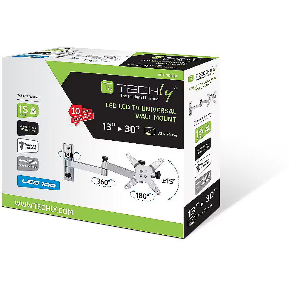 URL - https://www.techly.com/13-30-wall-bracket-for-led-tv-lcd-tilting-3-joints-silver.html