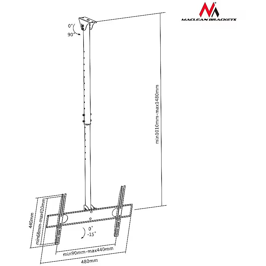 Description - Ceiling Bracket for TV 32-65 "Maclean MC-631 50kg