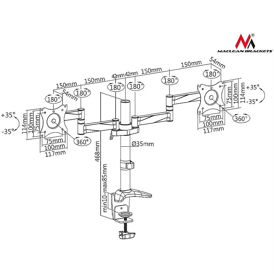 Description - Handle desktop to two LCD monitors Maclean MC-714 13-27 "8kg aluminum