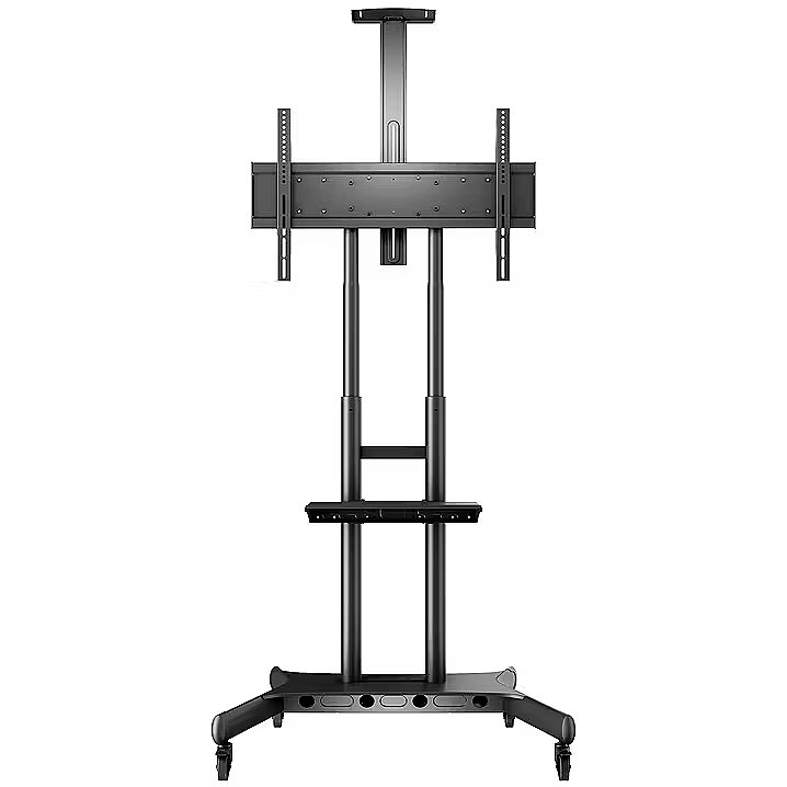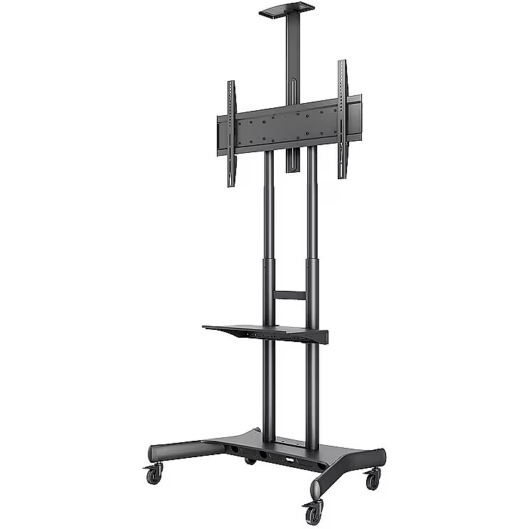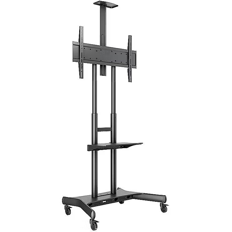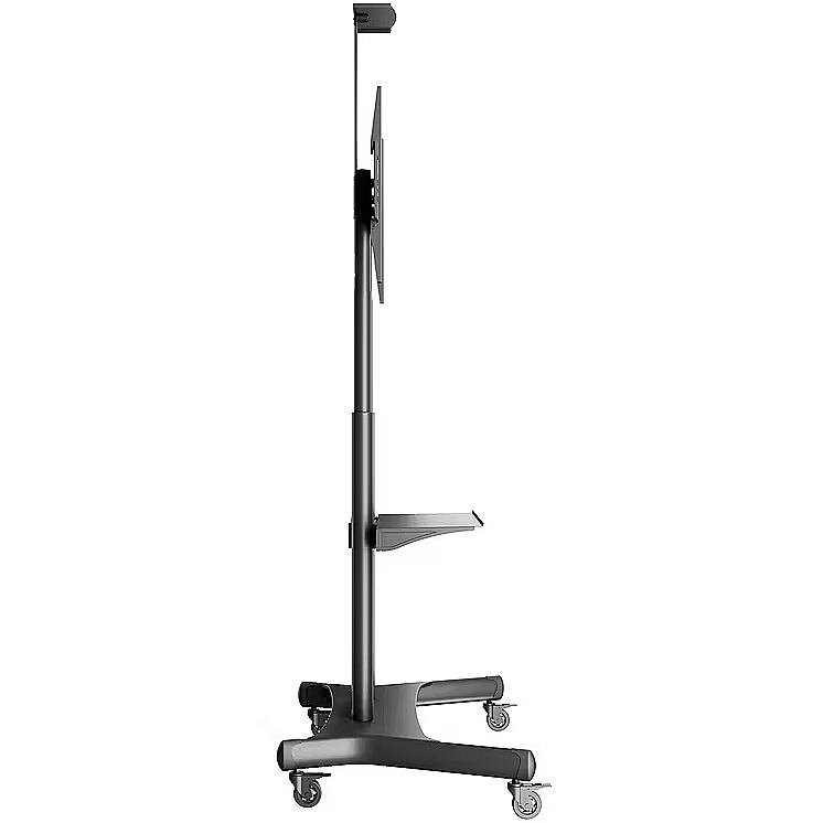 LongDesc - The Multibrackets Floorstand Basic TV Trolley, is a mobile TV -Stand capable of supporting any LCD, LED, or Interactive -display up to a screen size 80”, 90kg in weight and up to 800 x 500mm VESA.Quick and easy to install, combining neat design touches with robust quality, this superb value TV Trolley will give a lifetime of enjoyable and reliable performance.Perfect for use in education; classrooms, lecture theatres, or in commercial environments, Floorstand Basic features a large and stable base with four robust wheels . You can now move your valuable display safely and easily from room to room with smooth passage through doorways and over thresholds.Easy screen height- adjustment, and mobility mean that an optimal viewing position can always be achieved for any presentation, digital -signage or video-conference situation. The heavy -duty wheels feature a safety- brake, ensuring the Stand cannot roll out of position, whilst the Integrated cable- management system ensures a tidy and professional look.Accessories include an AV shelf, suitable for a DVD, laptop etc. or a camera shelf for the complete Video Conferencing solution.