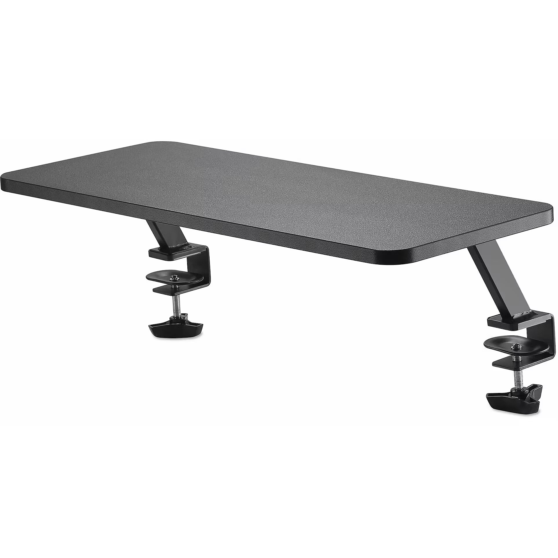 LongDesc - Clamp-on Monitor Shelf for Desk | For up to 34" MonitorsMaximize your desktop space and elevate your screen for more comfortable viewing with this monitor riser. It clamps on easily to your desk to open up more surface space, giving you an extra wide monitor shelf with a minimal footprint. The attractive black finish complements your office decor.Extra Work SpaceEnjoy an organized, clutter-free workspace with this space-saving monitor stand, 25.6" x 10.2" (65 cm x 26 cm). The extra wide monitor shelf provides ample room to hold your monitor and desk accessories. Use the large area underneath to store a full-size keyboard and other items, to keep everything within easy reach.Stable Support for your MonitorWith its heavy-duty base and sturdy platform, the clamp-on monitor shelf provides stable support for a single monitor up to 34"; with a maximum weight capacity up to 44 lb. (20 kg). You can also use the monitor stand to raise your laptop or printer, freeing up desk or counter space underneath. The integrated cable management slots keep cables organized and out of view.Fast and Easy AssemblyThe office desk monitor shelf offers fast and easy set up, with a C-clamp that attaches easily on to desk surfaces up to 1.3" (33 mm) in thickness. It offers a great space-saving solution without permanently altering your desk or table surface.MNRISERCLMP is backed by a StarTech.com 5-year warranty and free lifetime technical support.The StarTech.com Advantage