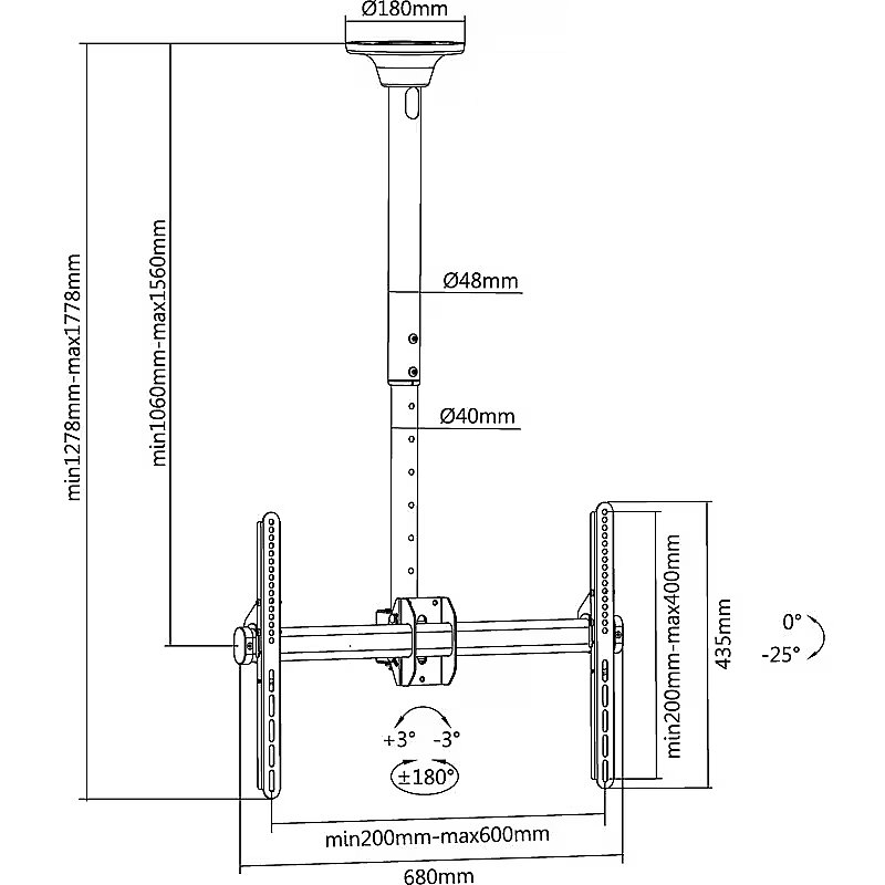 Reflecta PALLAS Telescopic TV Ceiling Mount, 37-70"