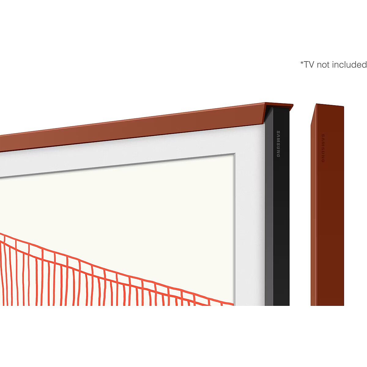LongSummaryDescription - Samsung VG-SCFA55TRC/XC. Product type: Frame, Product colour: Terracotta, Material: Plastic. Width: 1241.1 mm, Height: 714.2 mm, Depth: 24.6 mm. Package width: 1326 mm, Package depth: 90 mm, Package height: 94 mm