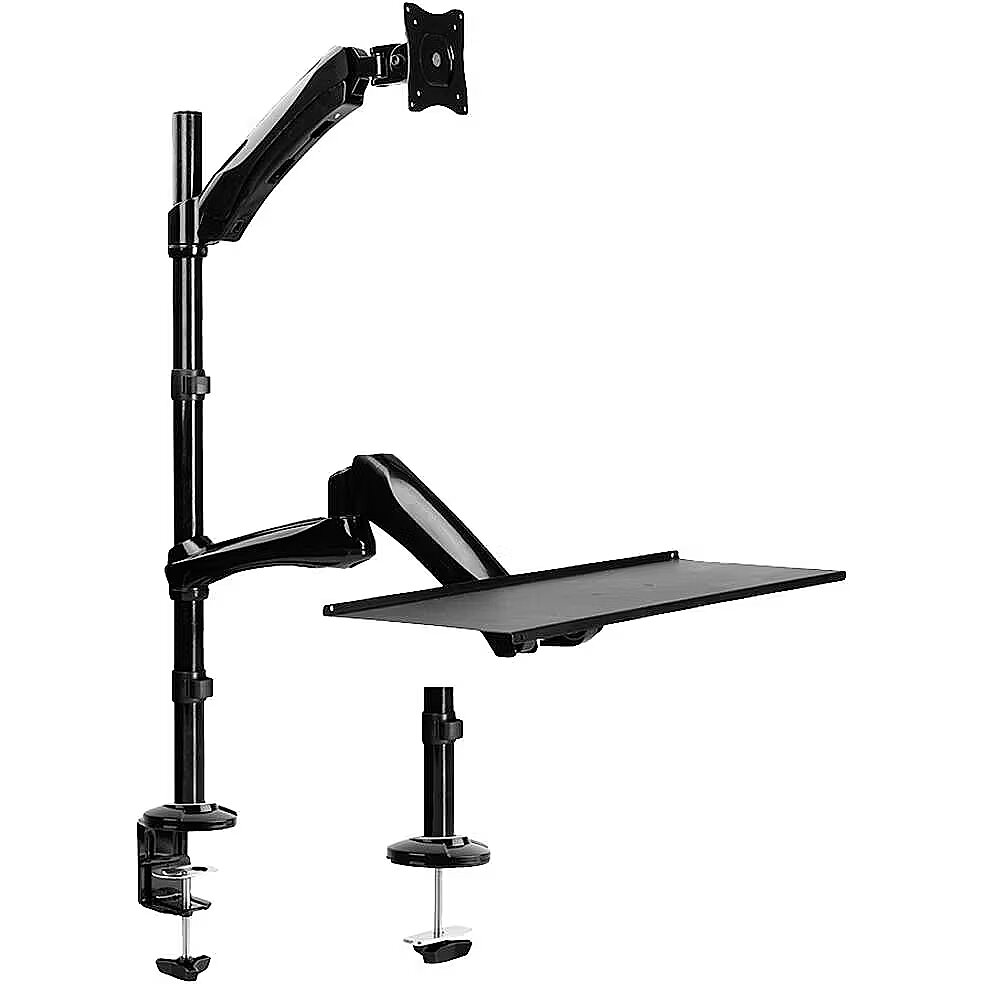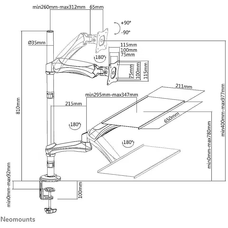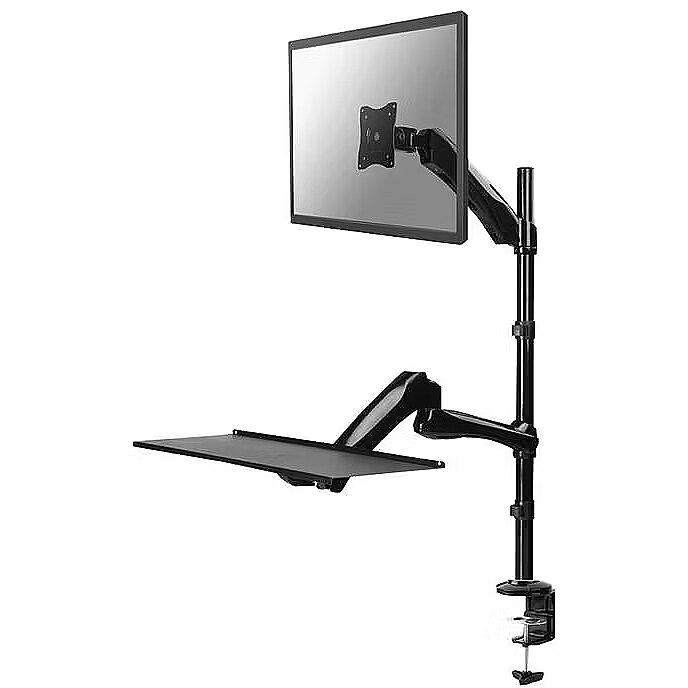 LongSummaryDescription - Neomounts FPMA-D500KEYB Sit-stand workstation desk 10-27" - gas spring. Mounting: Clamp/Grommet, Maximum weight capacity: 9 kg, Minimum screen size: 25.4 cm (10"), Maximum screen size: 68.6 cm (27"), Minimum VESA mount: 75 x 75 mm, Maximum VESA mount: 100 x 100 mm. Height adjustment, Tilt angle range: 0 - 180°. Product colour: Black