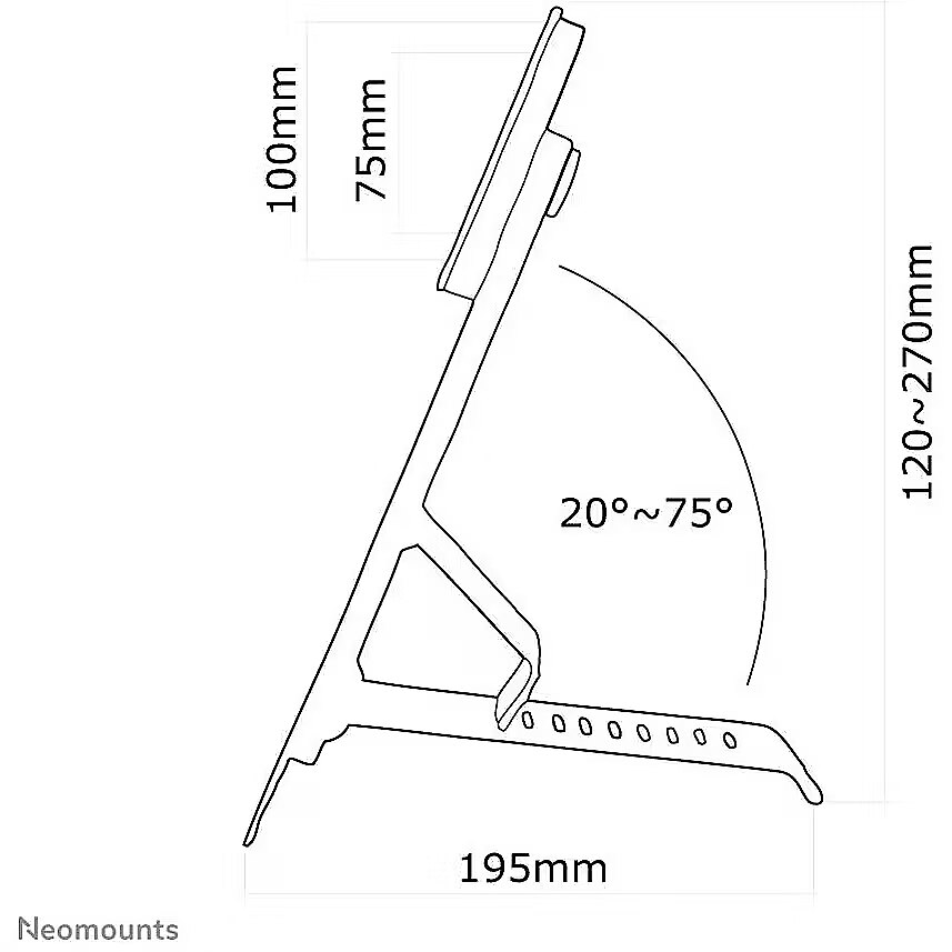 LongSummaryDescription - Neomounts FPMA-D825BLACK Monitor stand 10-27" - tiltable. Mounting: Freestanding, Maximum weight capacity: 10 kg, Minimum screen size: 25.4 cm (10"), Maximum screen size: 68.6 cm (27"), Minimum VESA mount: 75 x 75 mm, Maximum VESA mount: 100 x 100 mm. Height adjustment, Tilt angle range: 0 - 70°. Product colour: Black