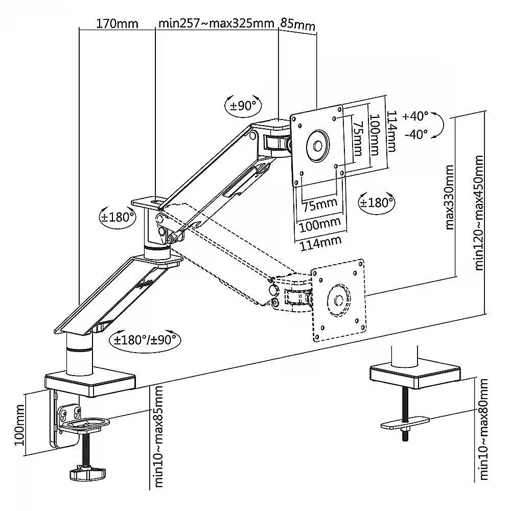 Other features - Designed for LCD LED monitors from 17" to 32" Adjustable inclination from +40° to -40° Very easy assembly Maximum load: 8 kg Elegant design High quality Possibility of mounting to a tabletop or a hole for cables VESA standard: 75x75, 100x100mm