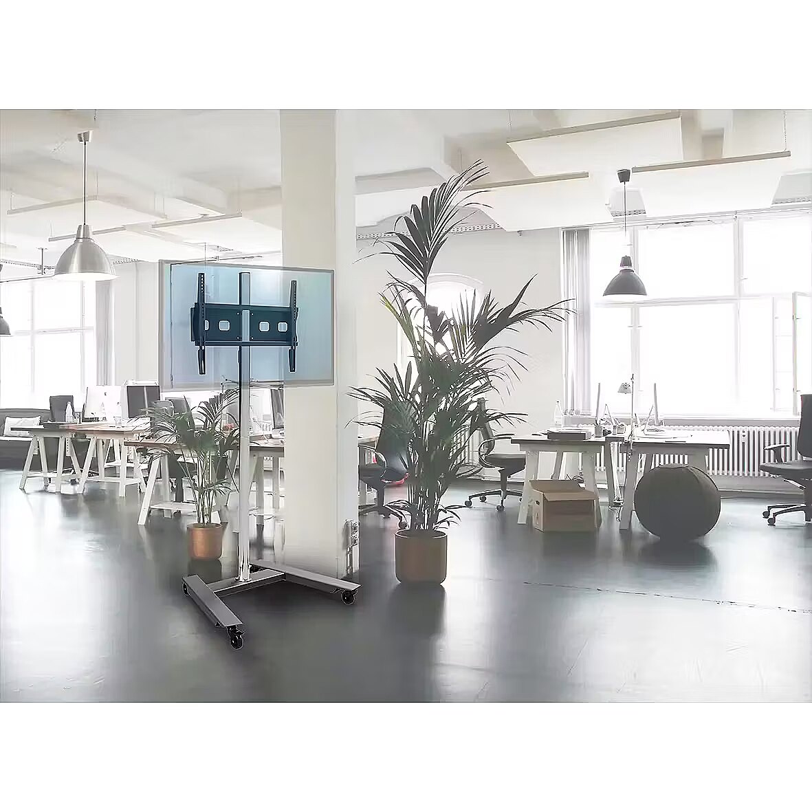 Technical details > Other features - Adjustable height; Split vertical pipe; Cable management for smart installation; Includes 4 braked castors; Possible change of screen adapter