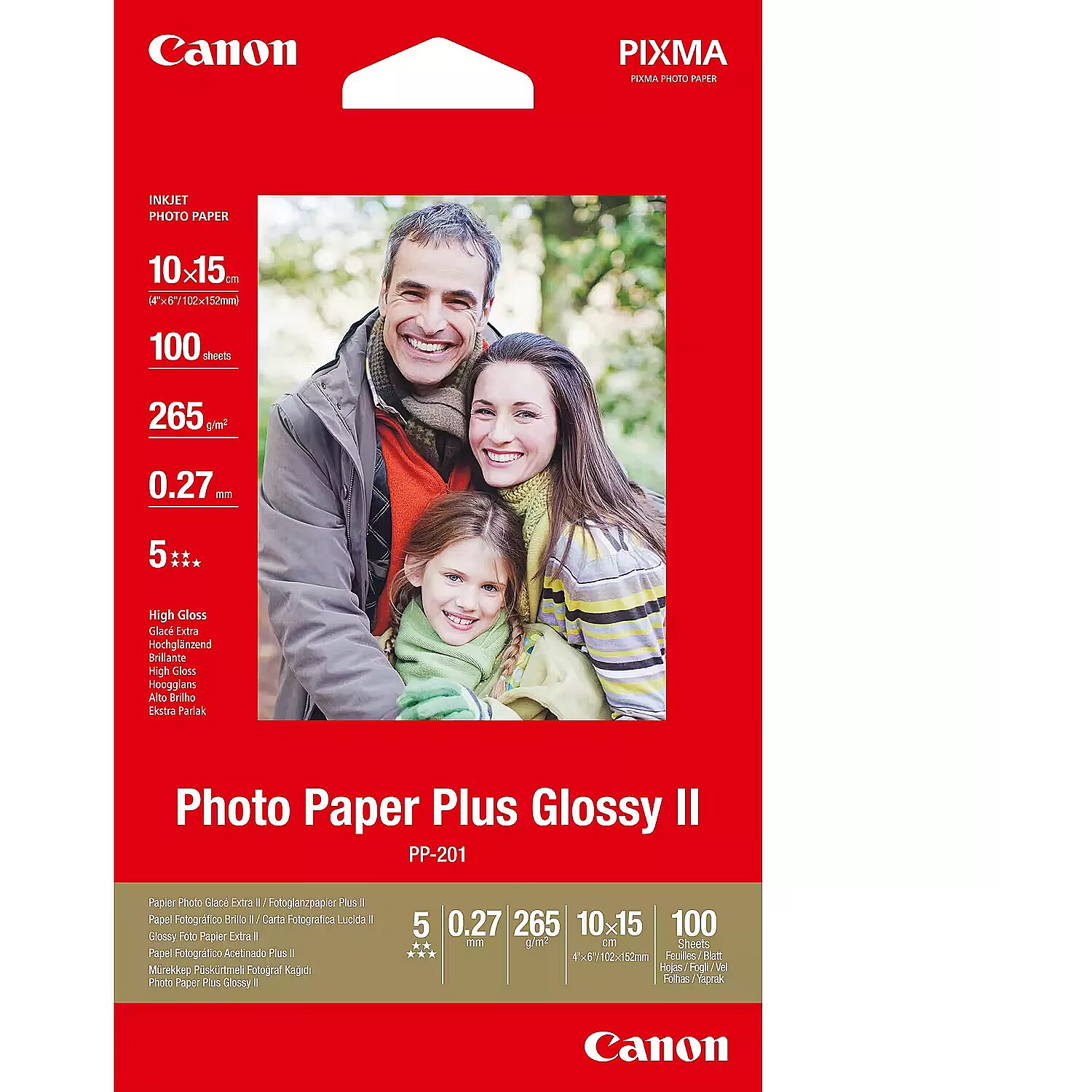 ShortSummaryDescription - Canon PP-201, High-gloss, 265 g/m², Inkjet, 10x15 cm, 4x6", Photo
