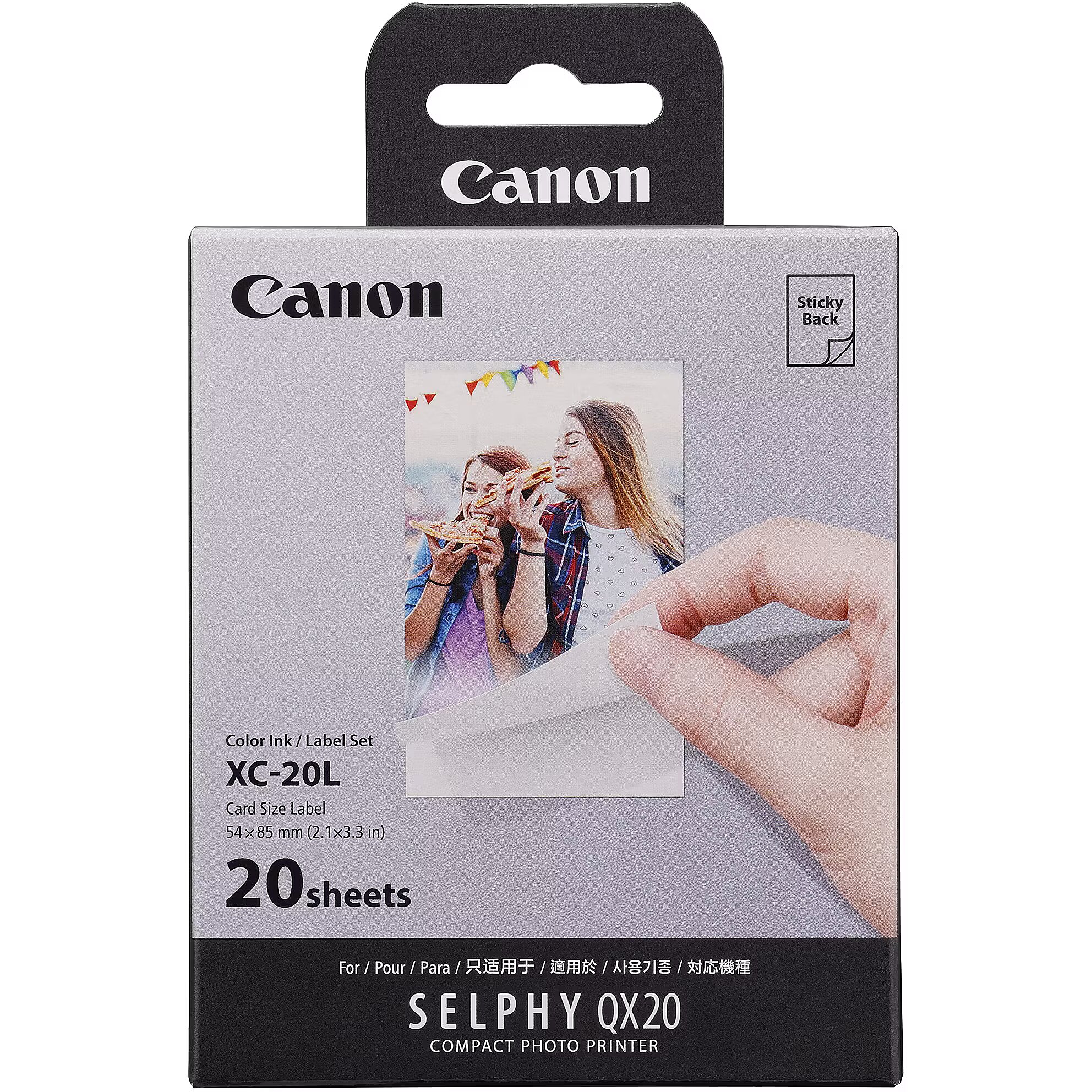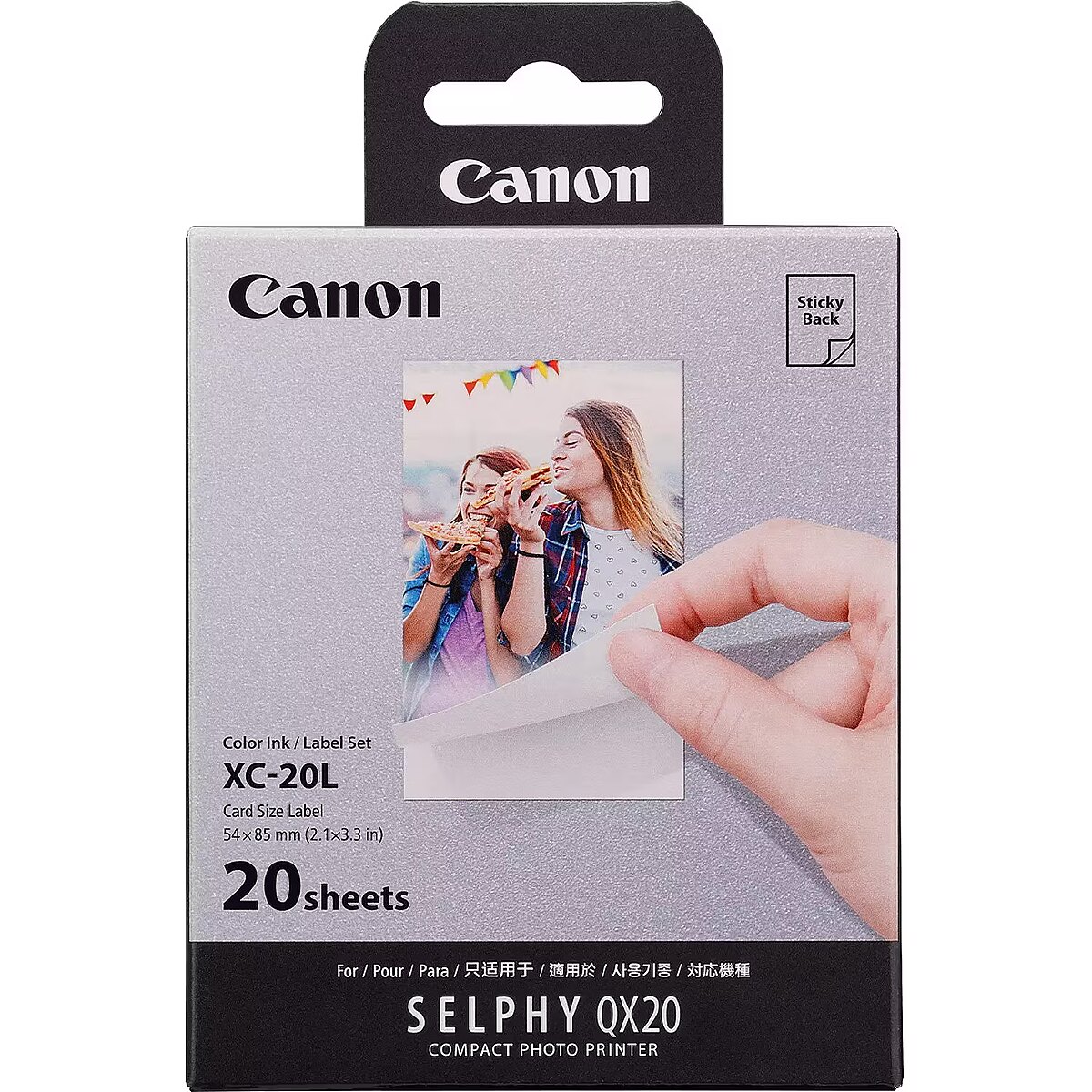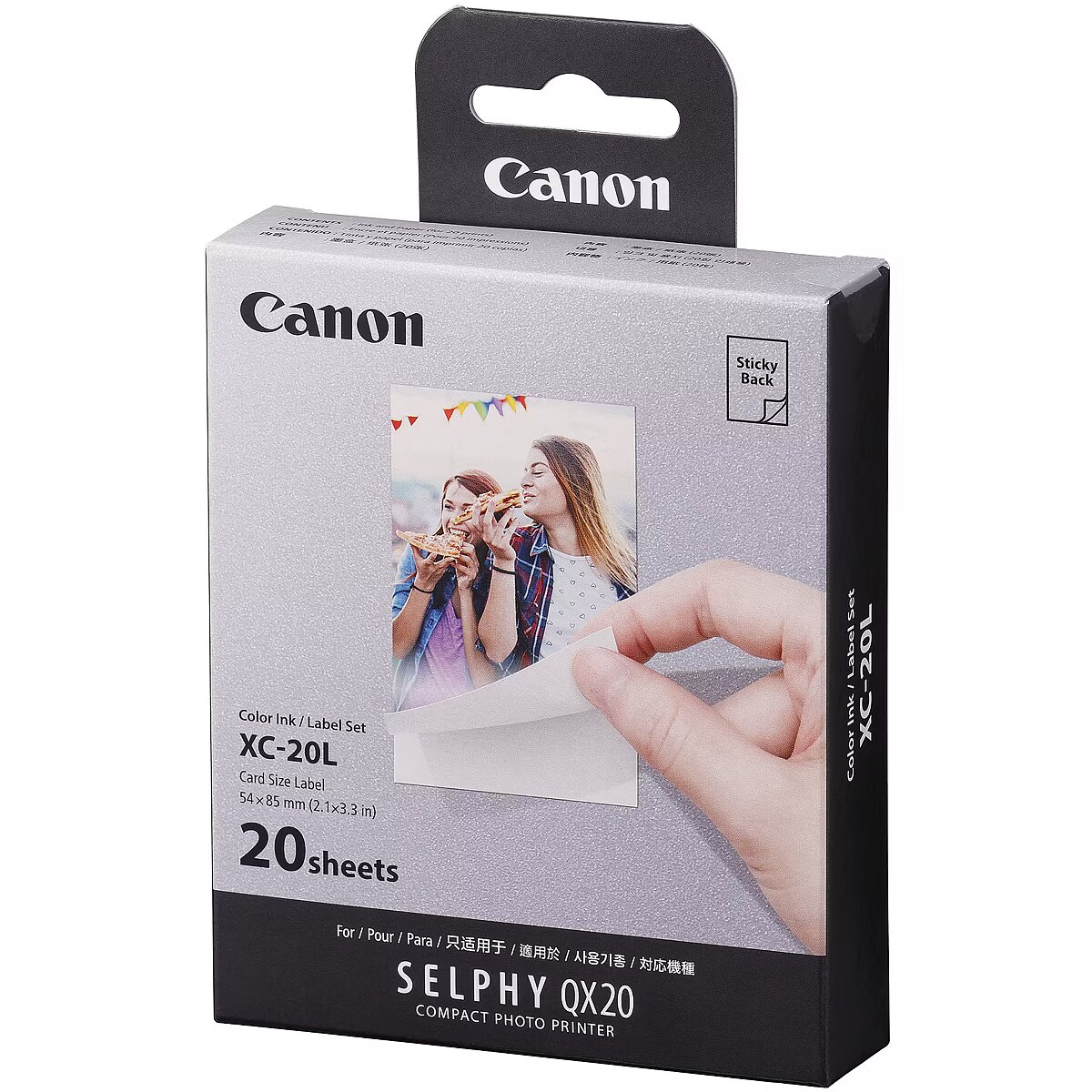 Description - The XC-20L ink and paper kit allows you to print photos from your SELPHY QX20 printer. The card-size paper with a small border for text is perfect for printing photos for albums and diaries anywhere. The ink has been developed to ensure high quality prints. Thanks to the protective layer, it dries instantly and the result is high-quality, sharp and detailed images captured on paper with even printing. The protective coating on the paper is water-resistant, ensuring that the prints last a lifetime.