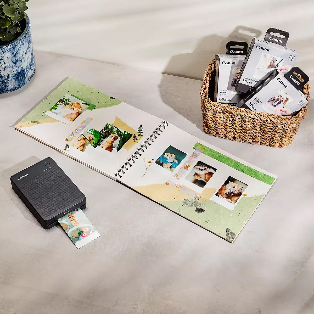 Benefits: The printed card-size photos are detailed and crisp with even printing, so they are ideal for diaries and albums. They also have a small border for text Compatible with the SELPHY QX20 small mobile printer for anywhere, anytime printing, making it ideal for events, festivals, travel, parties and more Durable prints will last up to 100 years if not exposed to light Protective coating increases durability and resistance to water and spills, while thermosublimation printing ensures sharp, crisp and detailed images with even printing Card size paper dimensions: 54 × 85 mm Box contents: XC-20L ink and paper set, 54 × 85 mm, 20 prints
