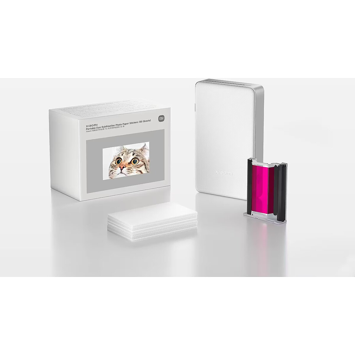 description_short_en - Sticker photo paper For Xiaomi Portable Photo Printer Pro Photo size: 5 × 7.6 cm Dye sublimation printing technology Pack of 50 sheets and 5 ink cartridges