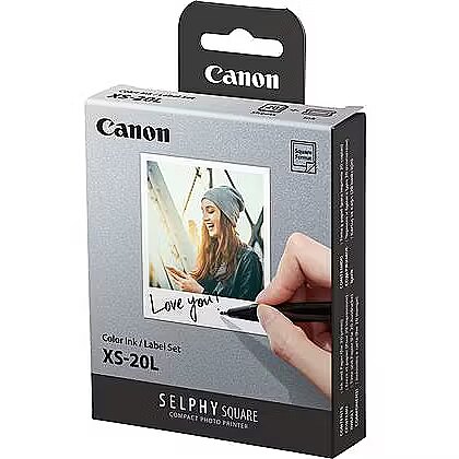 description_en - Canon Selphy Square Media Pack XS-20L consists of photo paper and ink. Both are for Canon Selphy Square QX10 printer. There are 20 sheets of 68 × 68 mm photo paper and they have a white border for writing.